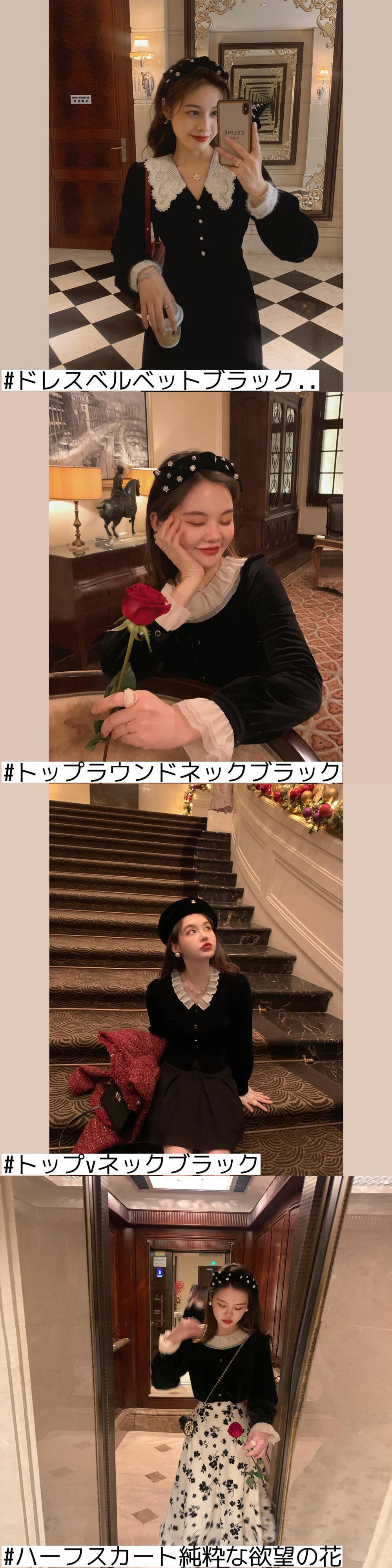 色:ドレスベルベットブラック,ドレスベルベットブラック..,トップラウンドネックブラック,トップvネックブラック,ハーフスカート純粋な欲望の花