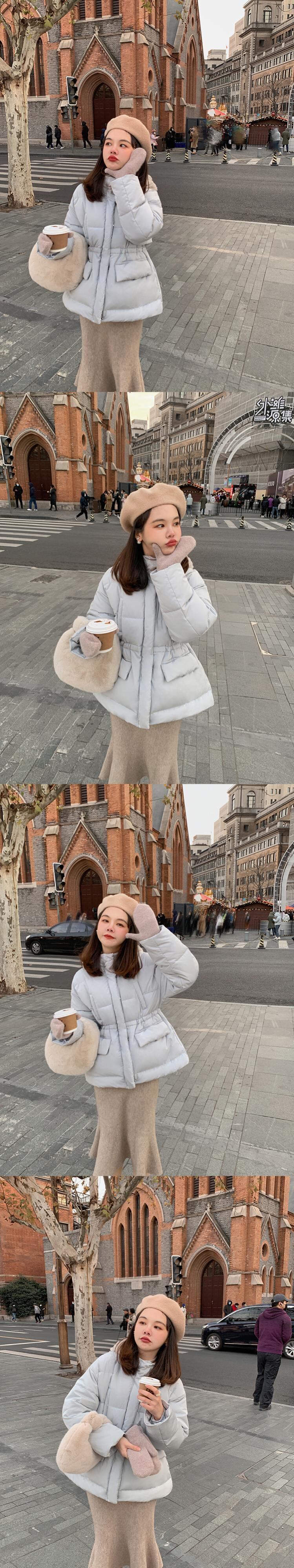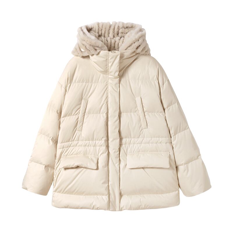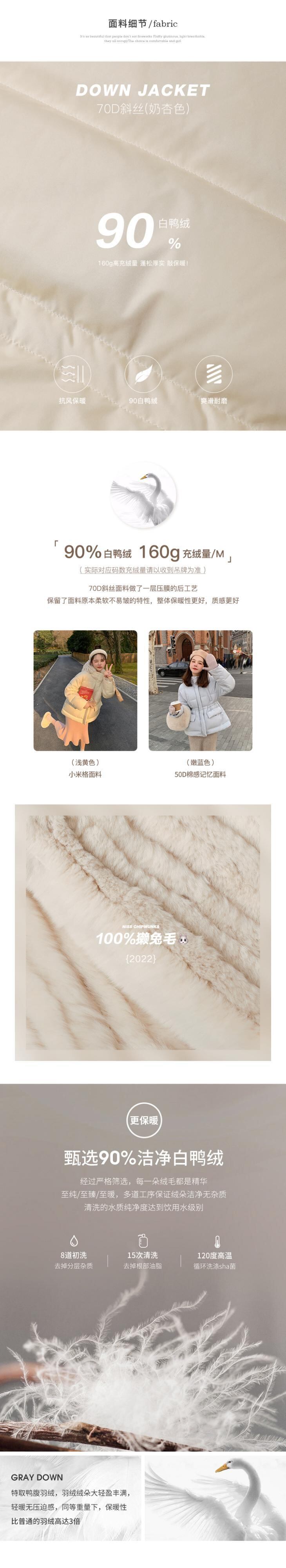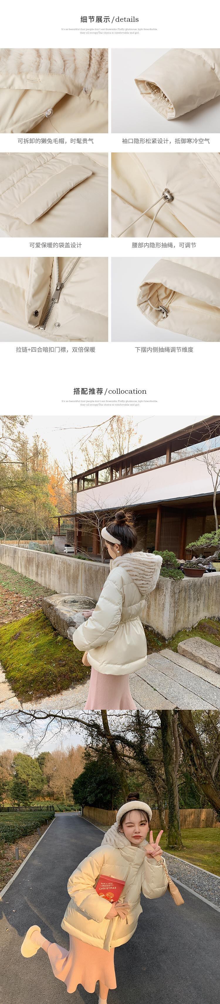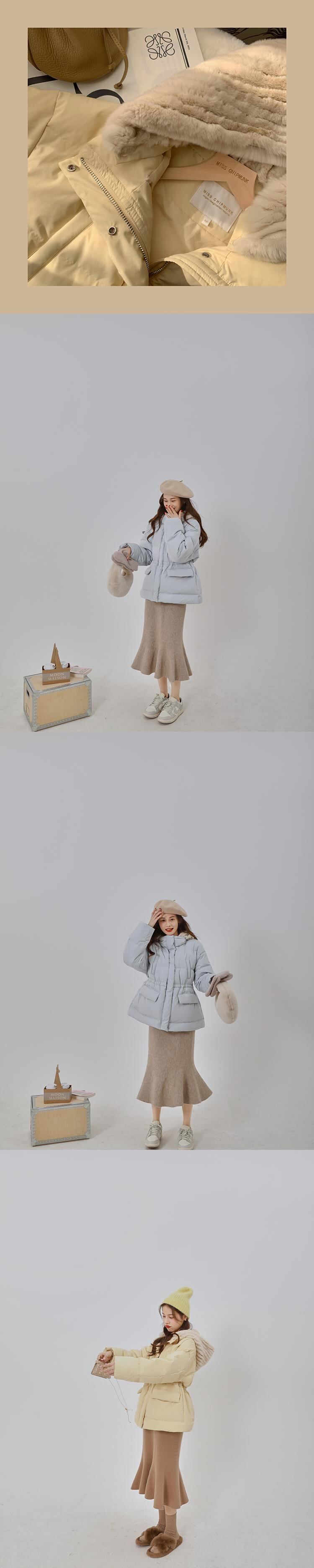 ミスチップマンク[ラビットbbダウンジャケット]リムーバブルレックスラビットファーハットウィンタースモールショートウエストコート missi13061106982
