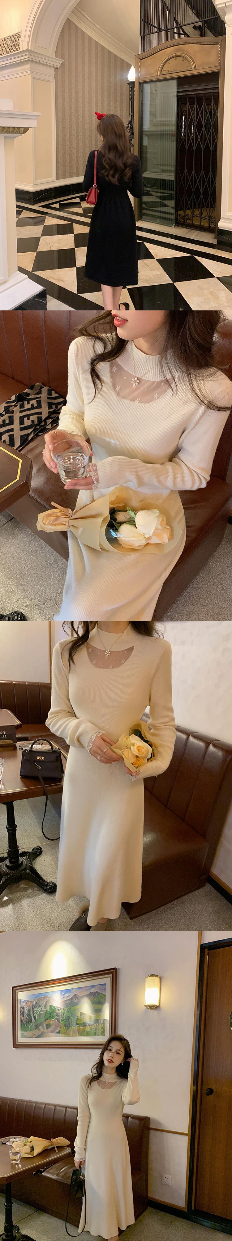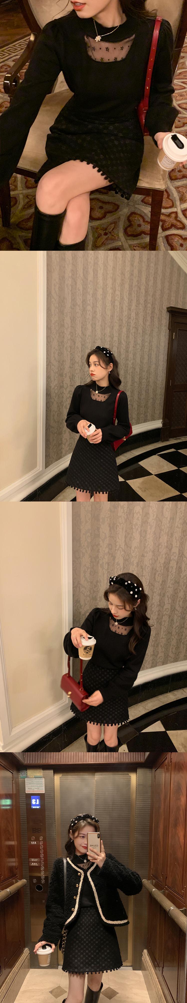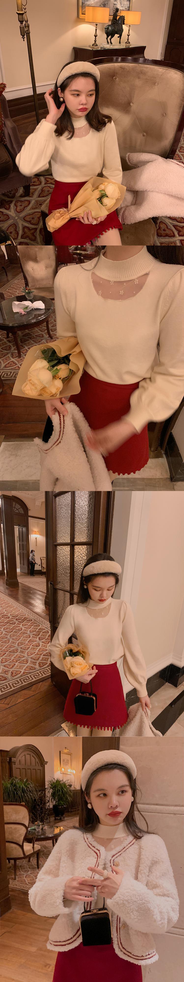 ミスチップマンク[冬のリトルラブソング]レースニットスカート/ラウンドネックVネックトップウィメンズイヤーズイブ服 missi78965704986