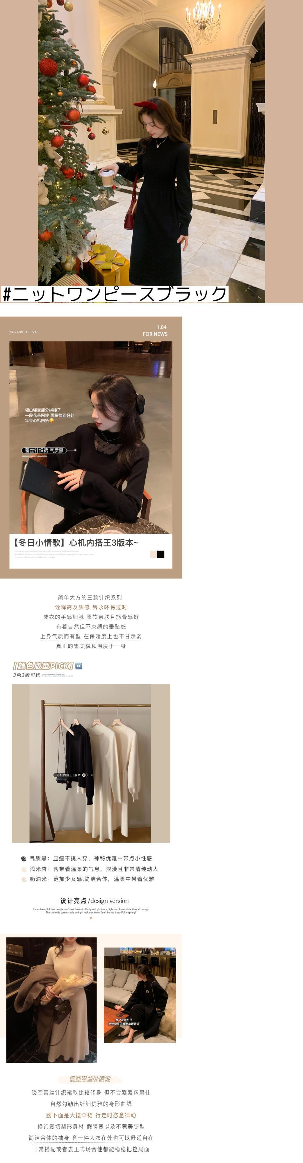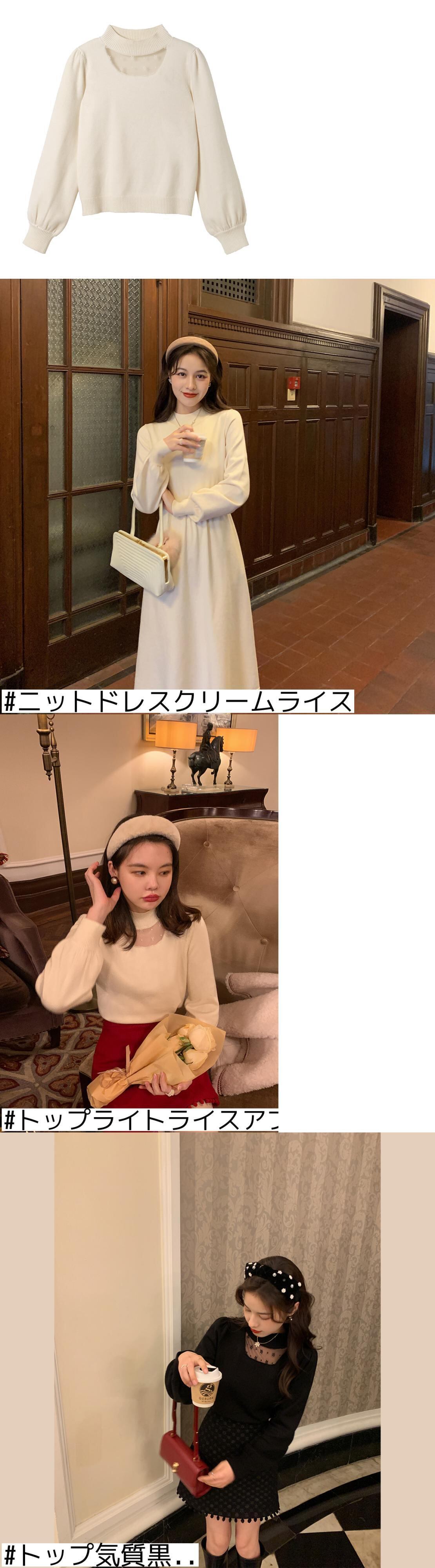 色:ニットドレスクリームライス,トップライトライスアプリコット..,トップ気質黒..,ニットワンピースブラック