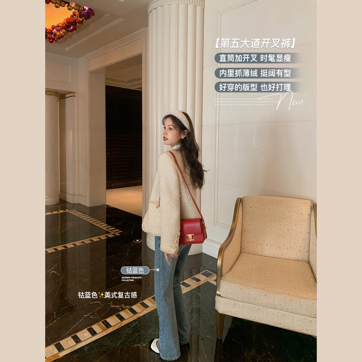 ミスシマリス[フィフスアベニュースプリットパンツ]レトロモダンジーンズレディースウエストストレートショーシンシンベルベット missi13172061037