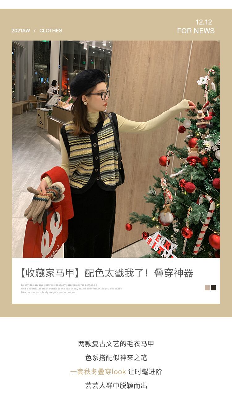 ミスシマリス[コレクターズベスト]レトロベストベストVネックセーターニットベスト missi38767500248