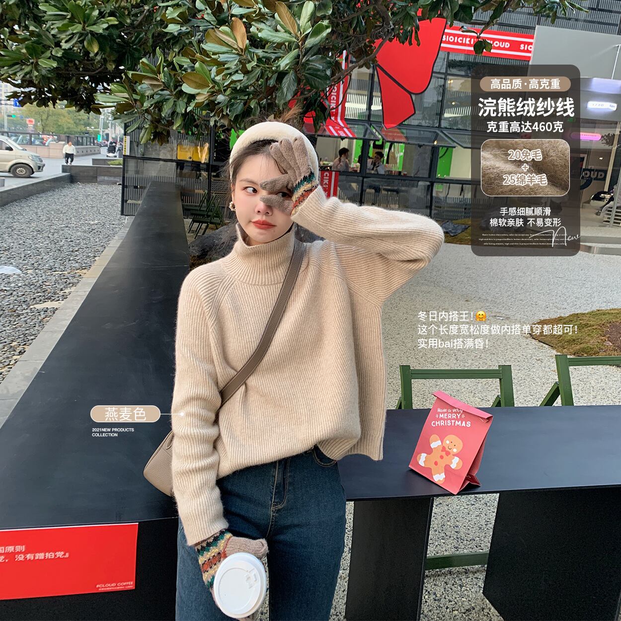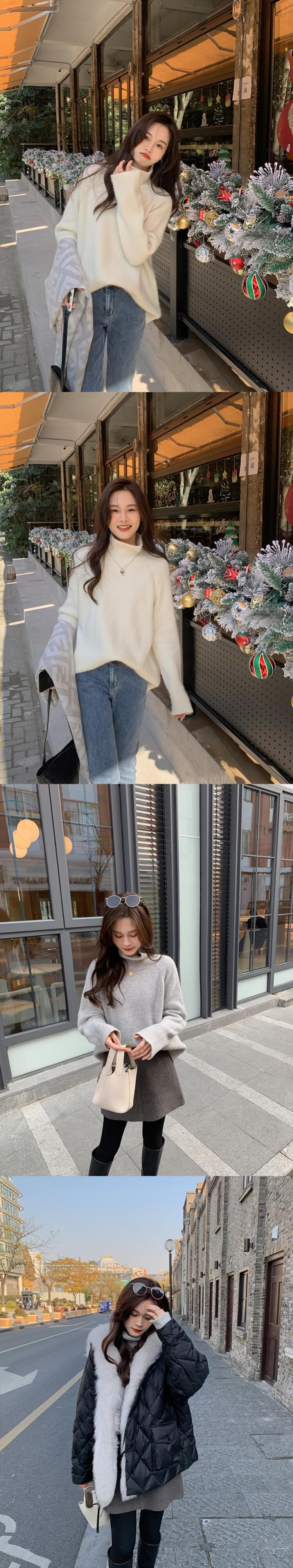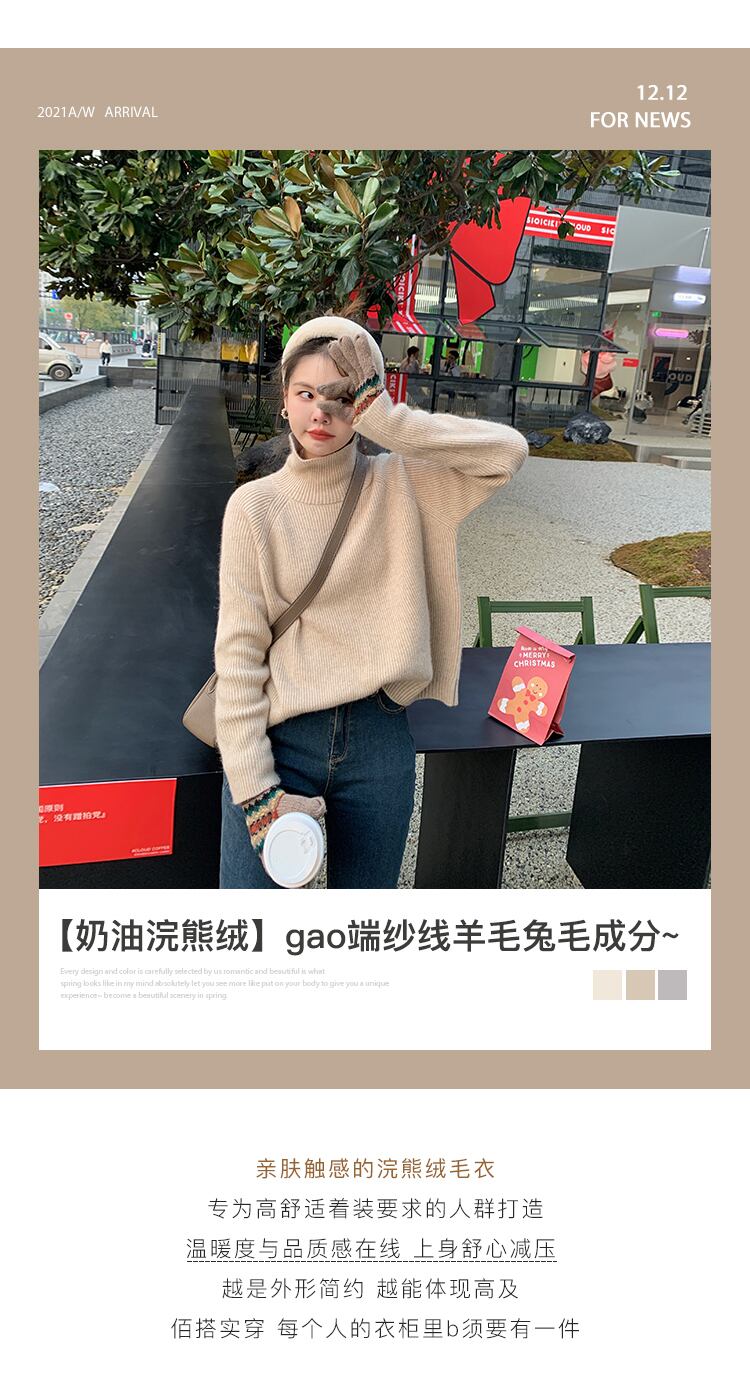 ミスシマリス[クリームアライグマベルベット]-グラムウール&ラビットヘアタートルネックソフトワクシーセーター女性の冬の肥厚 missi5625544398