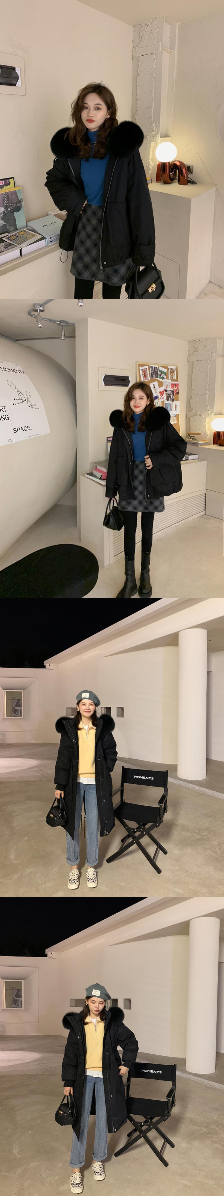 ミスチップマンクパーカーダウンジャケットウィメンズ2021ウィンターホワイトダックダウンロングラージファーカラー膝上とウエストシン missi86763813496