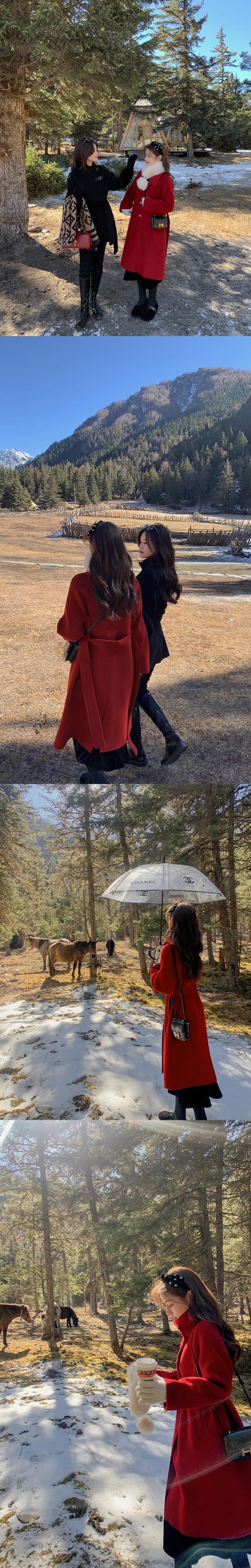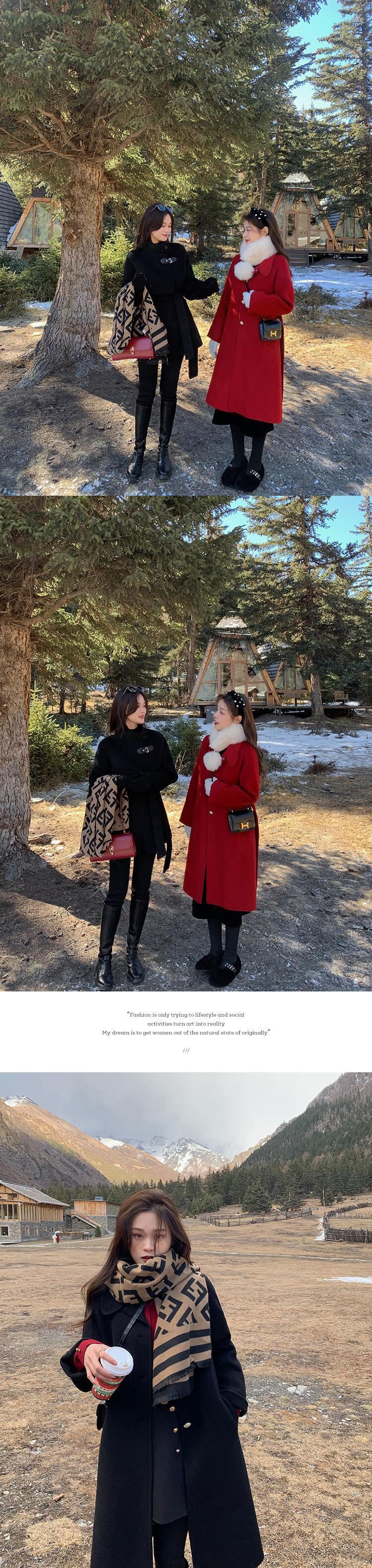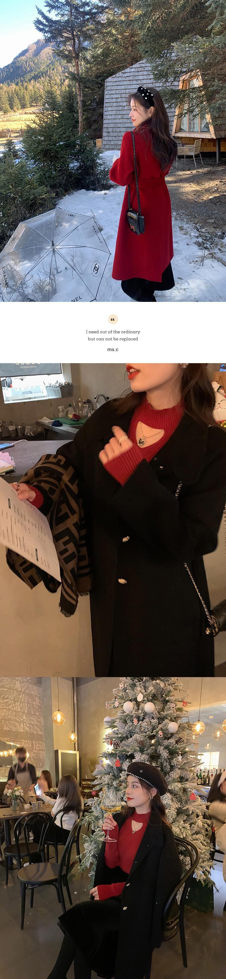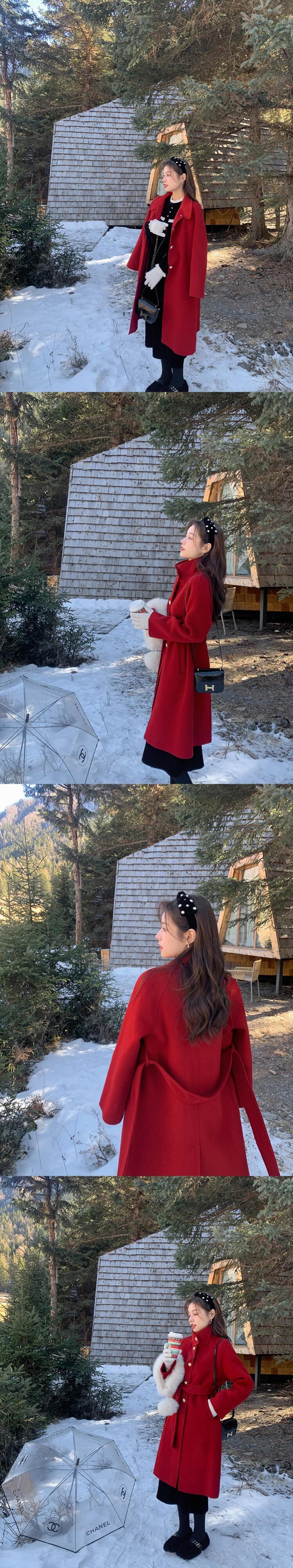 ミスシマリス[ローマコート] 100ウールミドル丈スモール両面ウールコート女性冬 missi35304523588