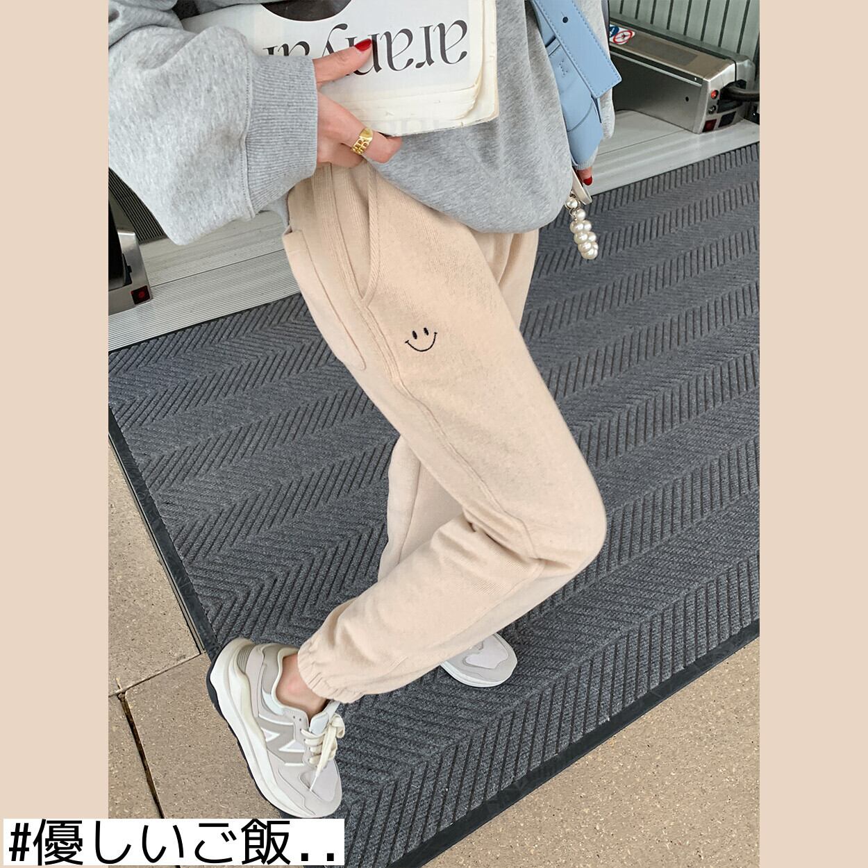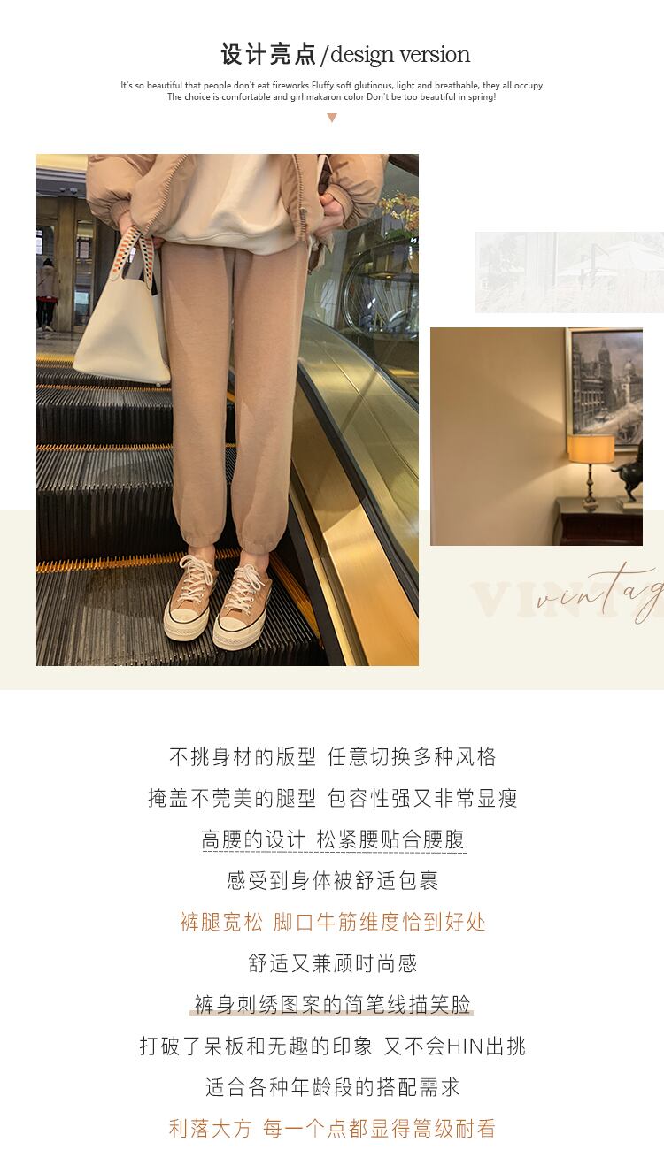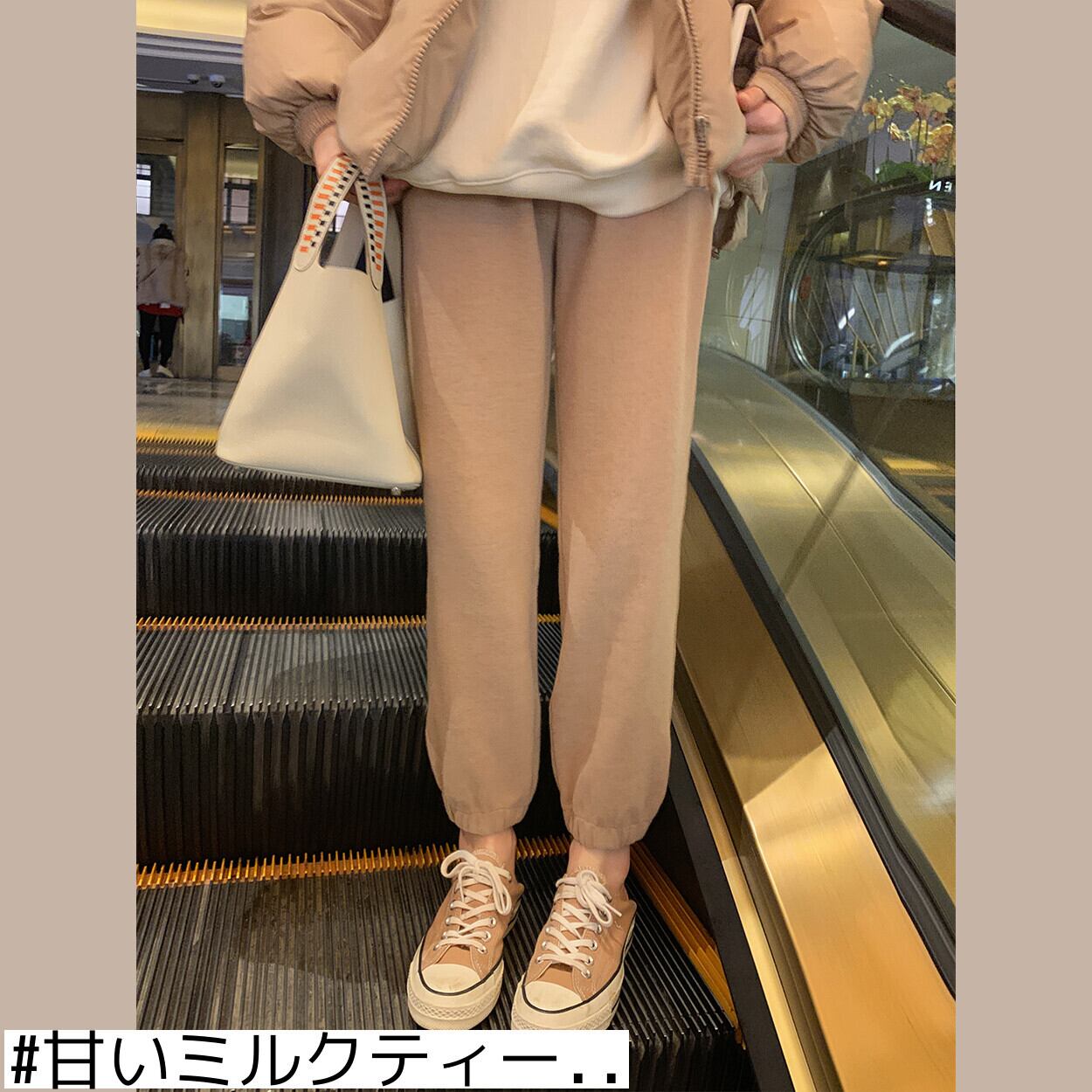 ミスシマリス[スマイリースウェットパンツ]コットンベルベットストレートレギンス女性スモールルーズハイウエストカジュアルパンツ missi8224236376