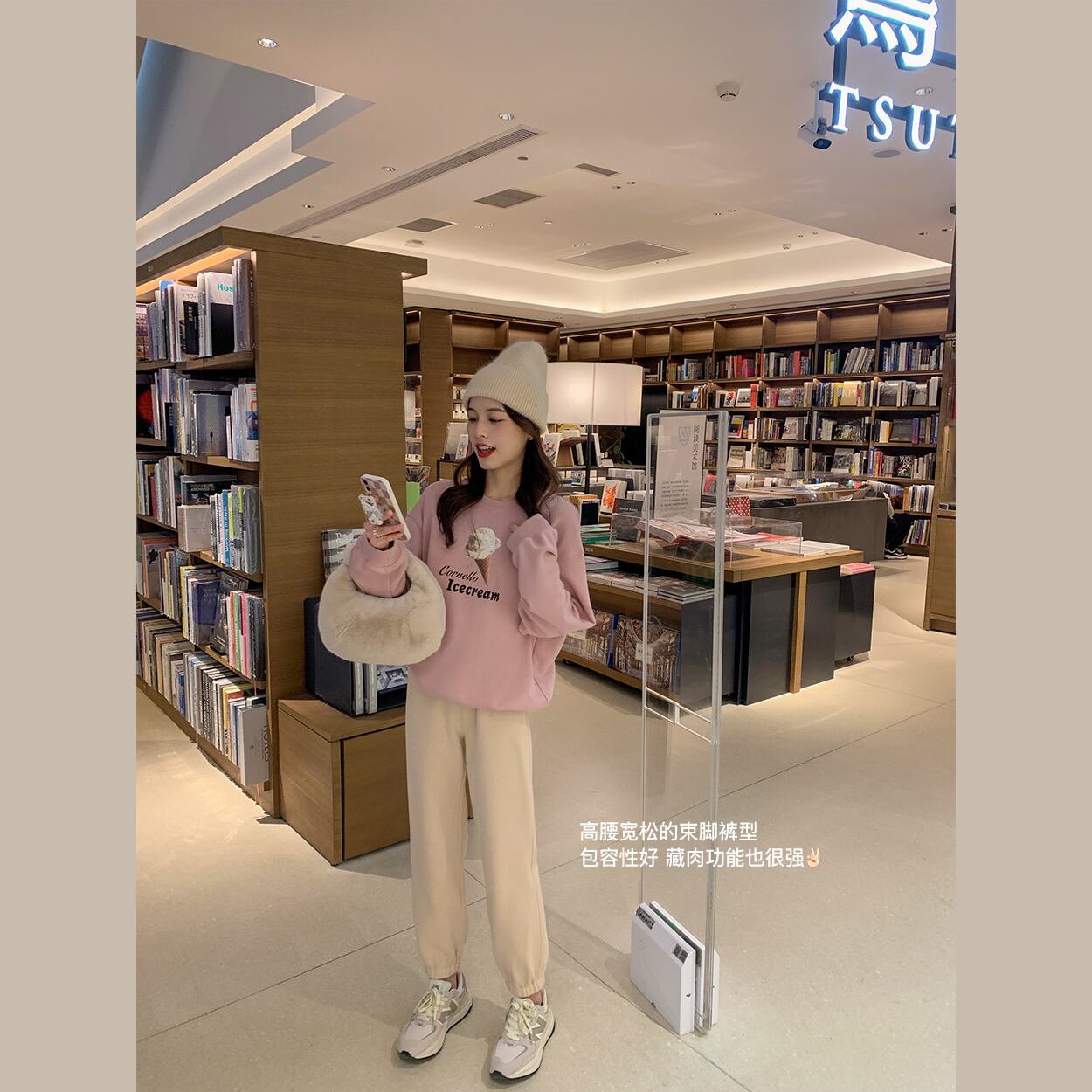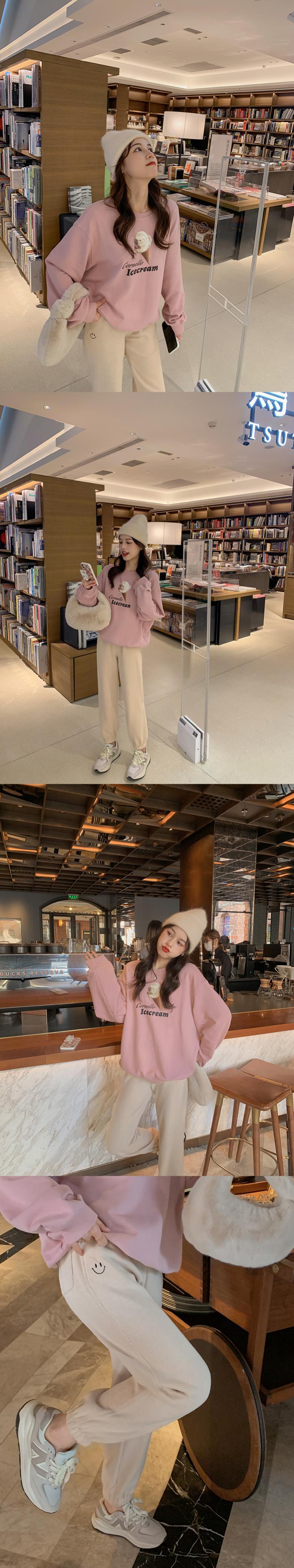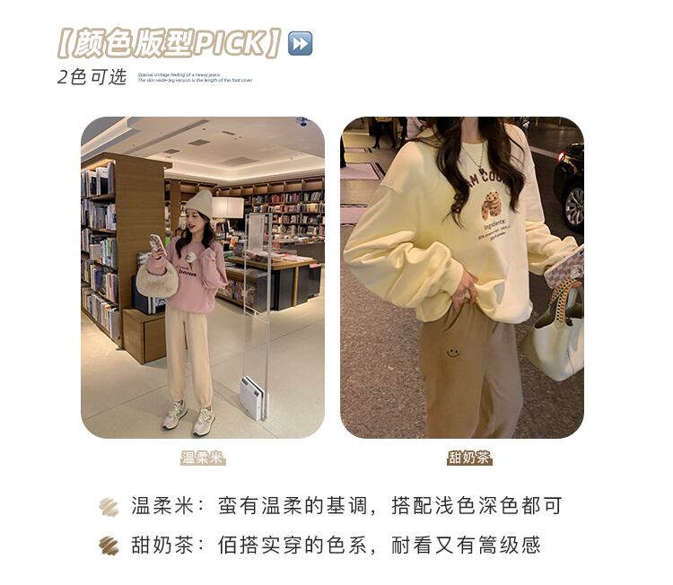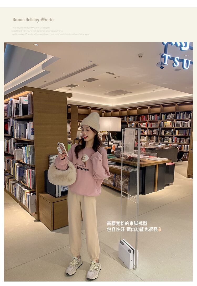 ミスシマリス[スマイリースウェットパンツ]コットンベルベットストレートレギンス女性スモールルーズハイウエストカジュアルパンツ missi8224236376