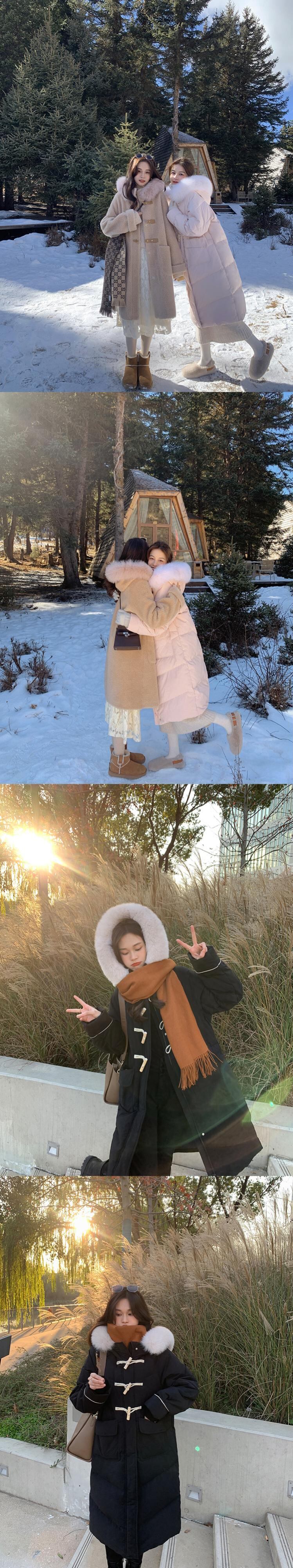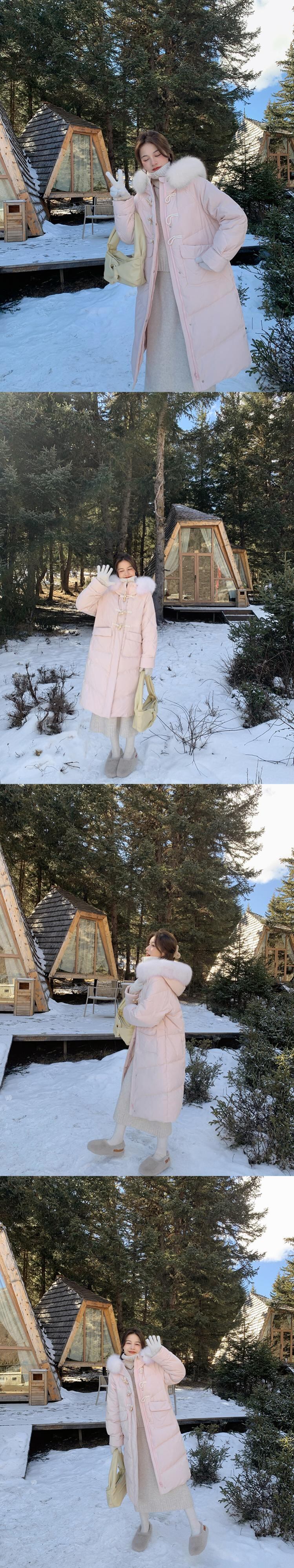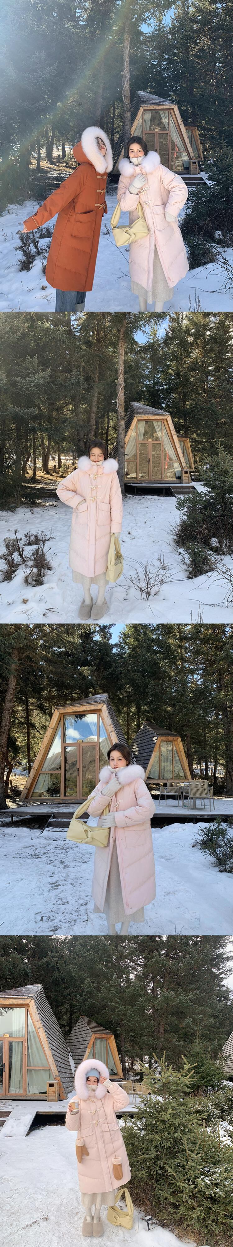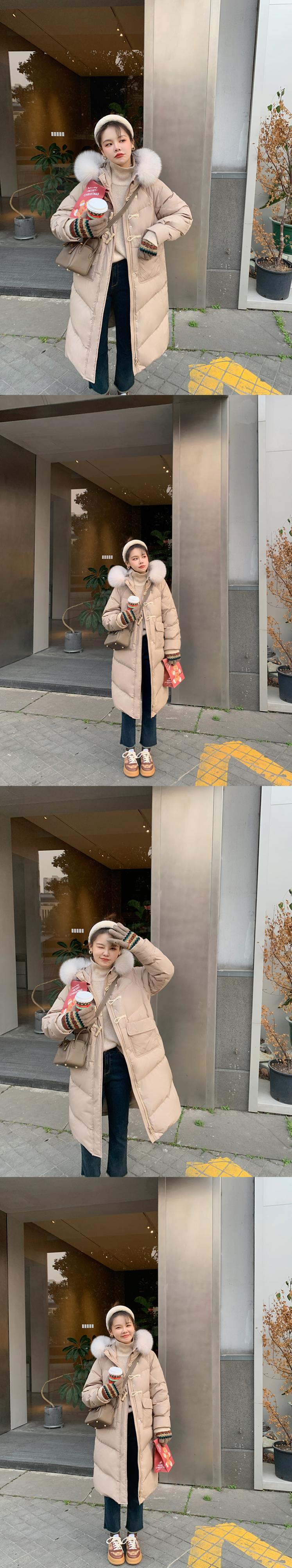 ミスシマリス[奈良フォーンダウンジャケット]リアルフォックスファーカラーレディースウィンターミドル丈ホーンバックルジャケット missi70241462269