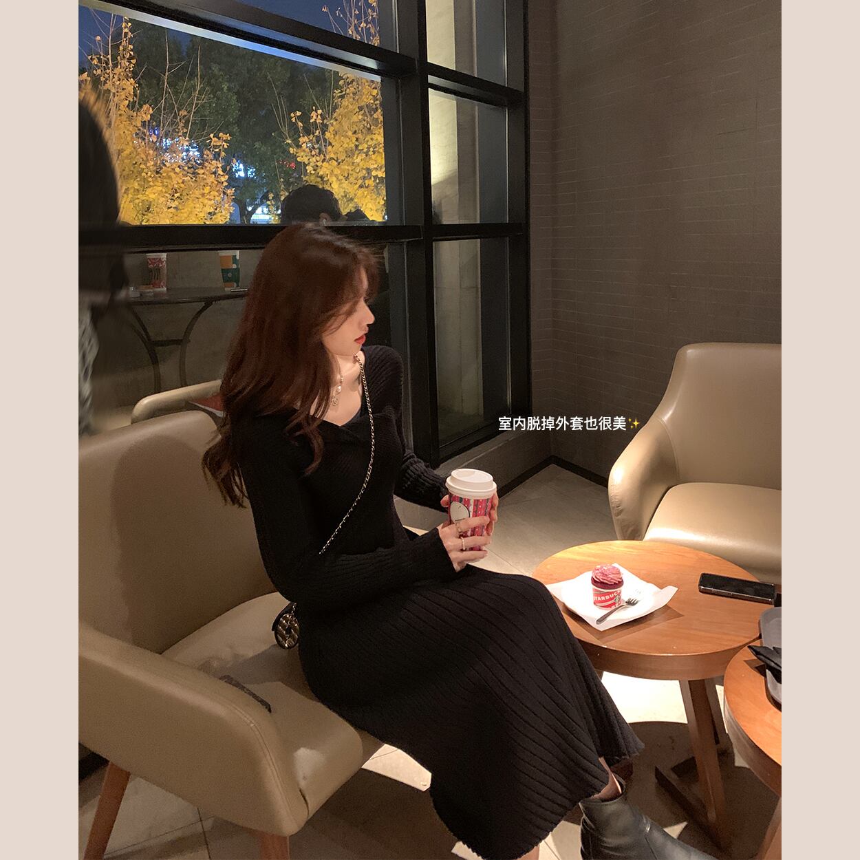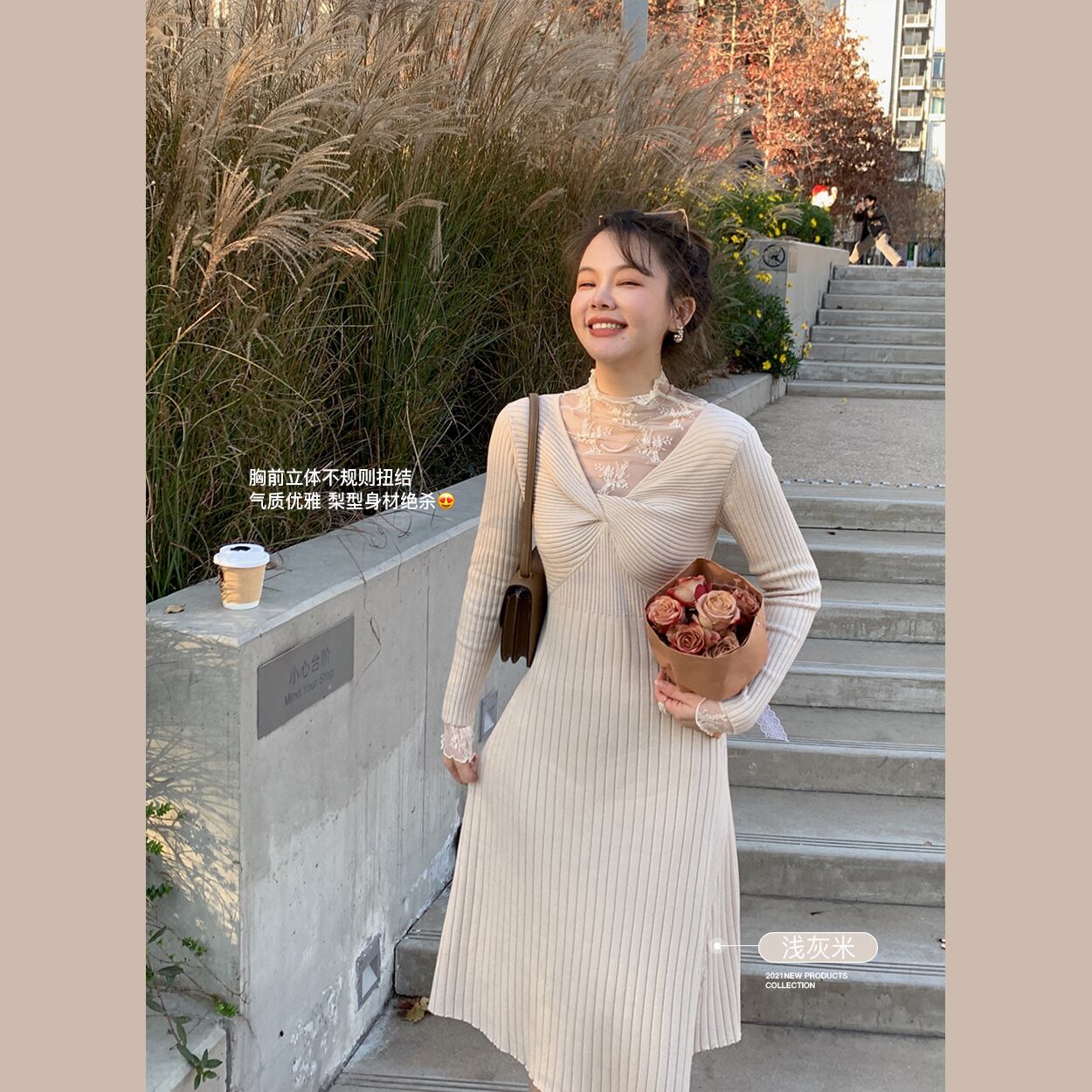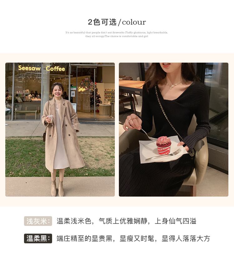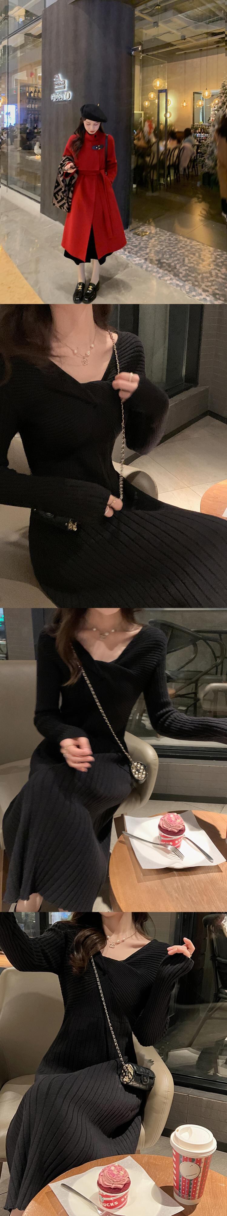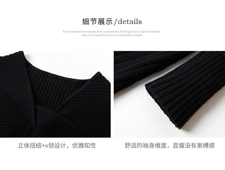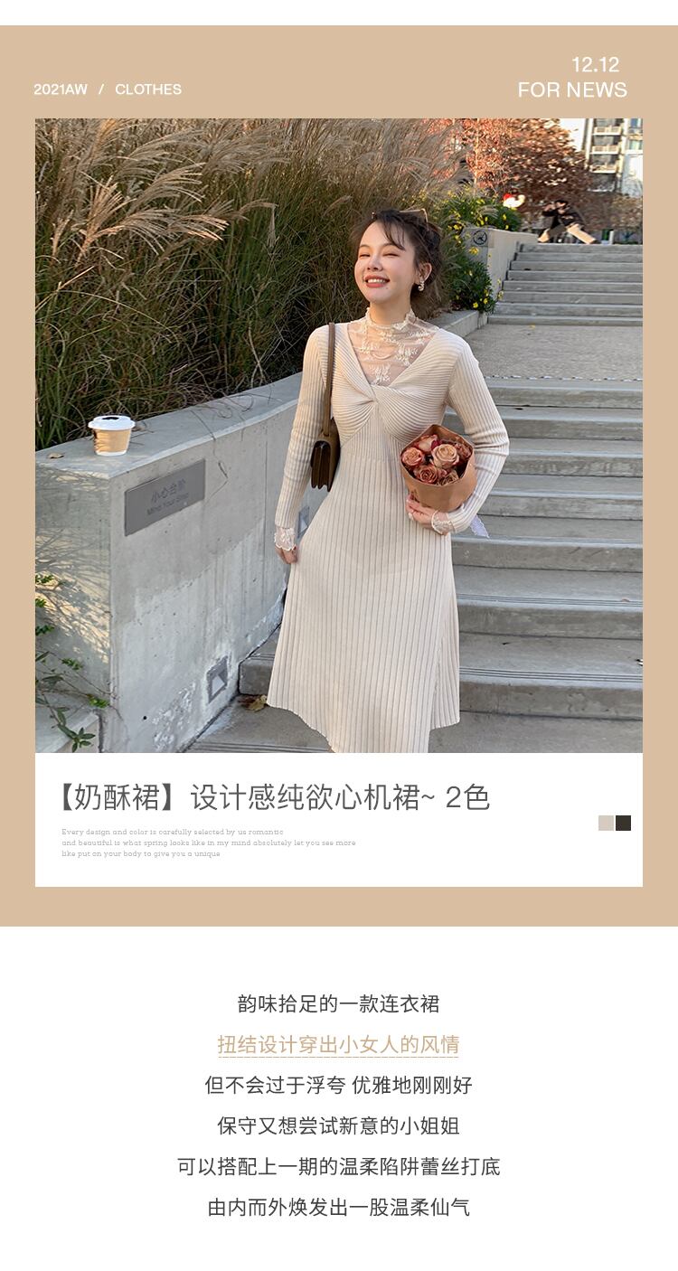 ミスシマリス【パイ生地スカート】ニットワンピースレディース冬デザインピュアな欲望Vネック厚手ボトミングスカート missi23065172803