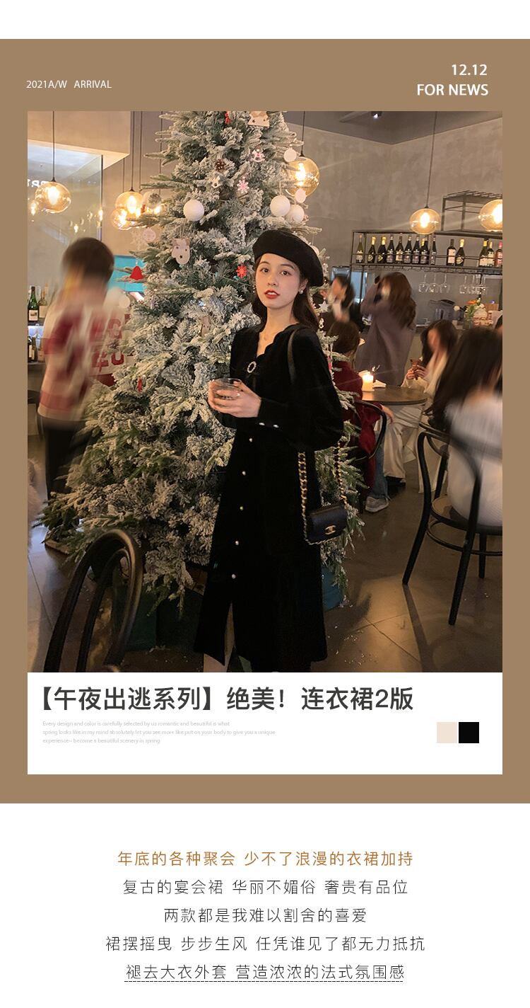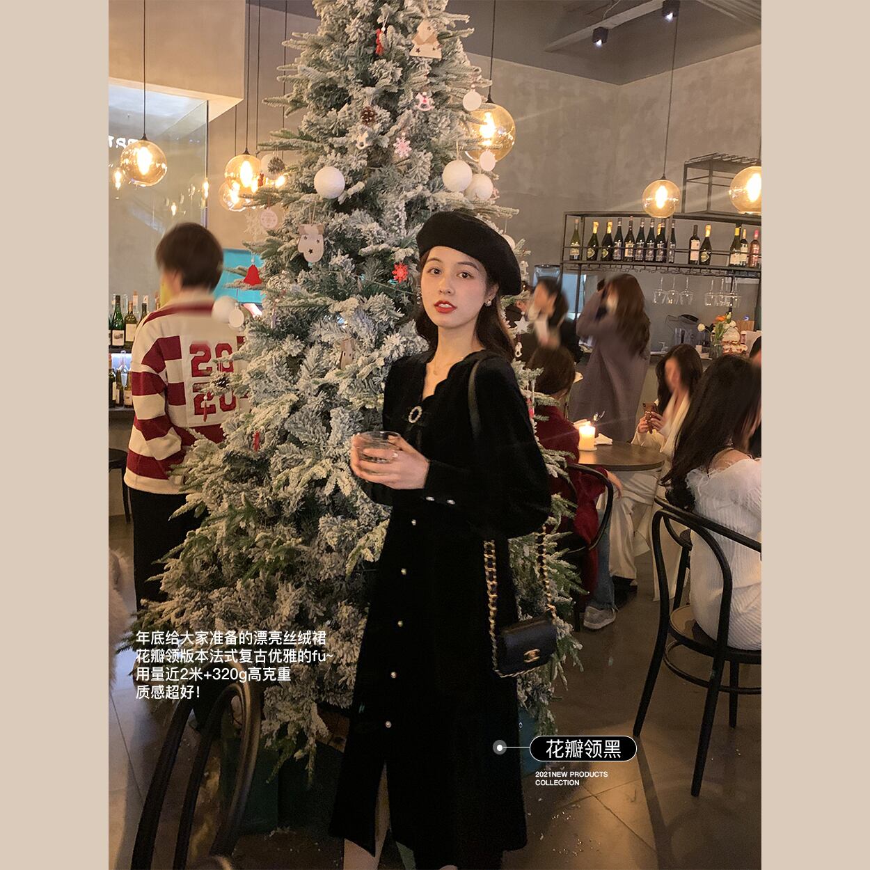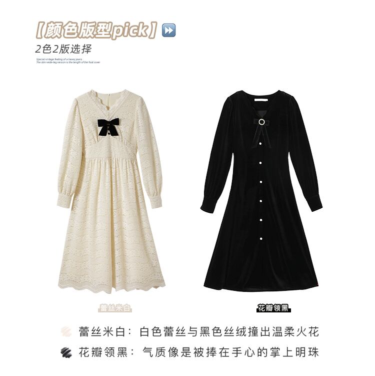 ミスシマリス[ミッドナイトエスケープ]レトロなベルベットドレスレースVネック女性冬肥厚ベース missi68321513319