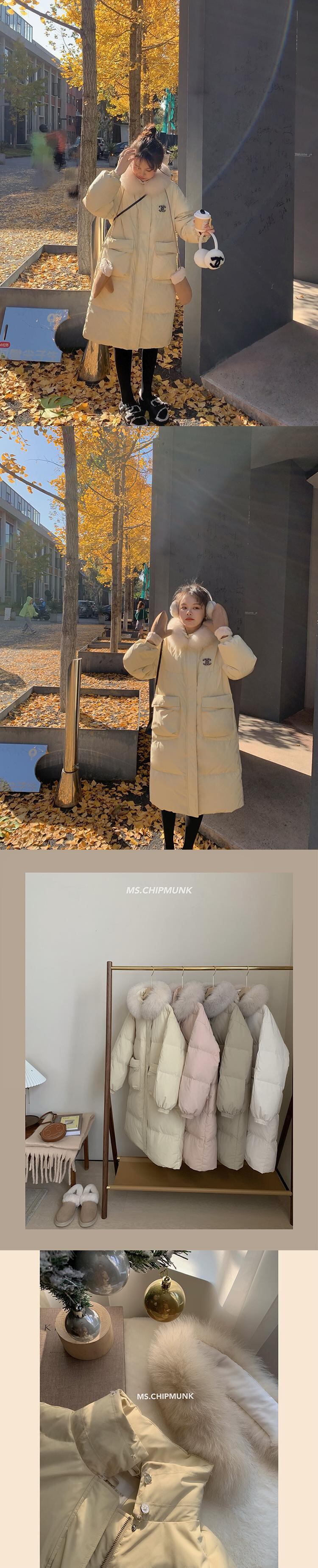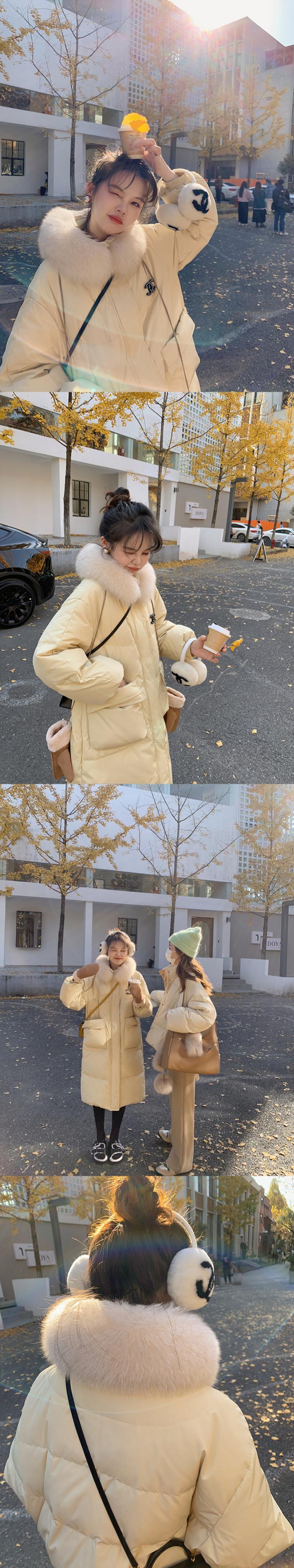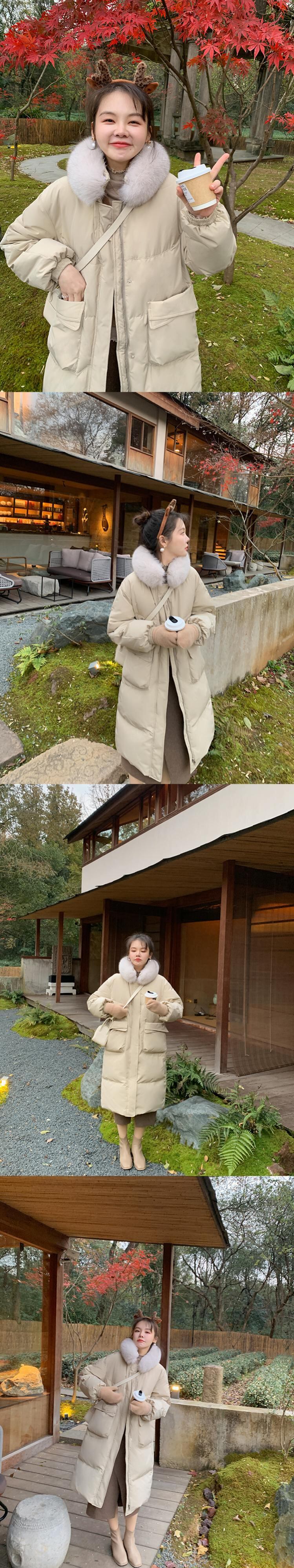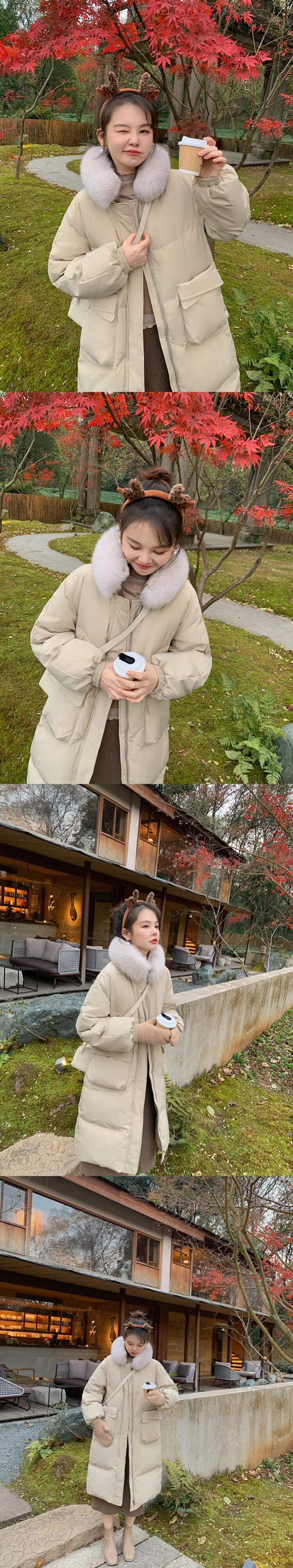 ミスシマリス【スモールミルクマッドダウンジャケット】本物のキツネファーカラーミドル丈コート女性冬スモールシックニング missi51241793214