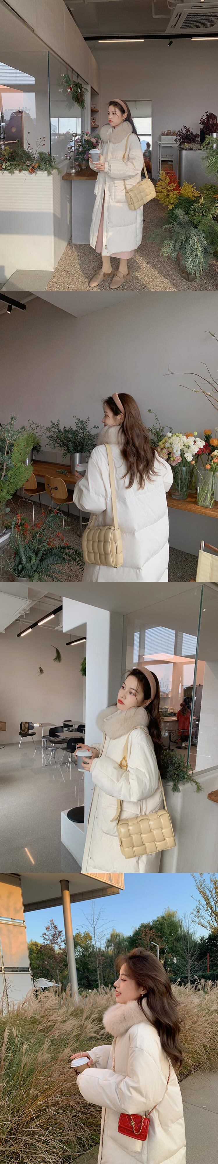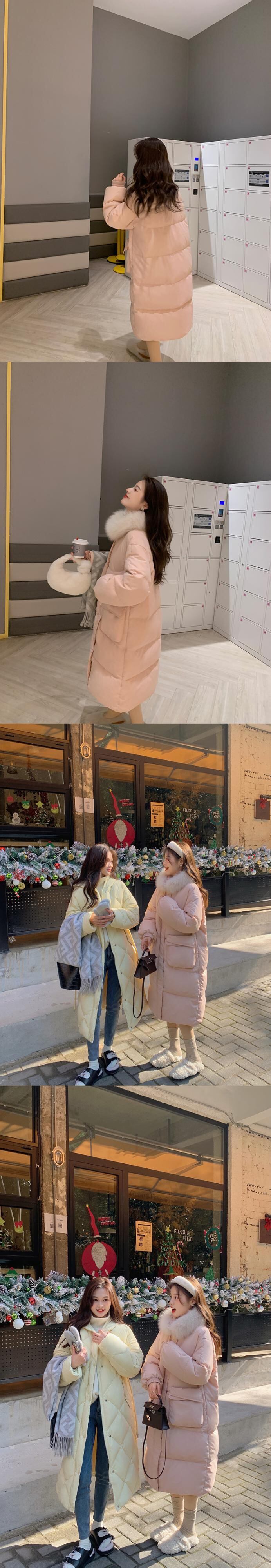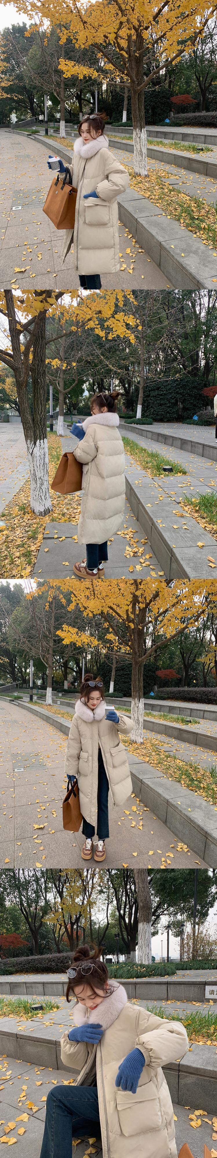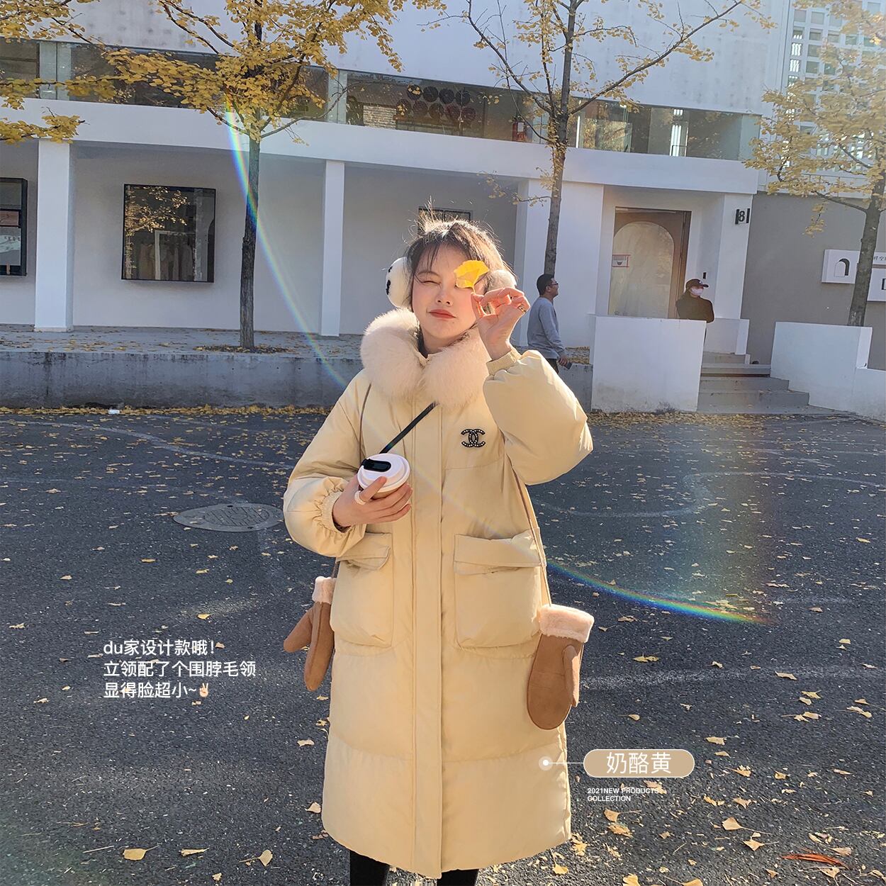 ミスシマリス【スモールミルクマッドダウンジャケット】本物のキツネファーカラーミドル丈コート女性冬スモールシックニング missi51241793214