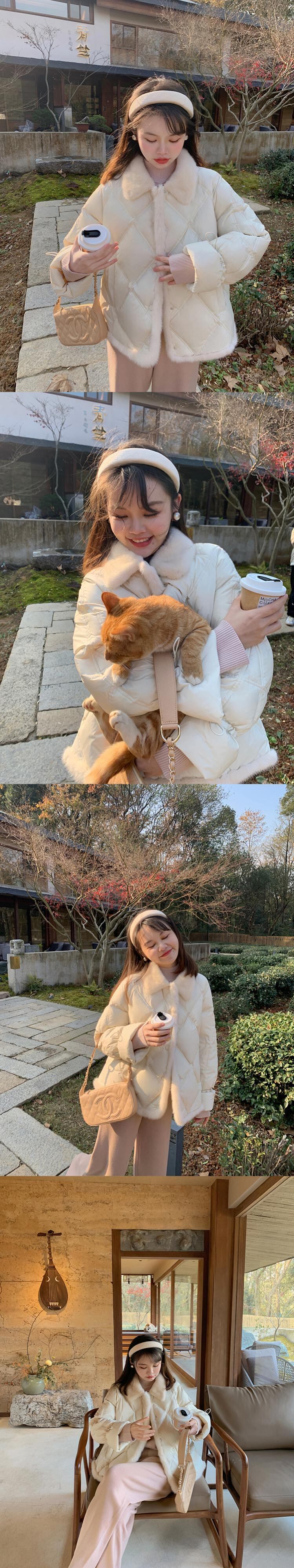 ミスシマリス[フィンランドの雪]フェアリースタイルミンクラペルスモールダウンジャケットショートウィンター missi53052837980
