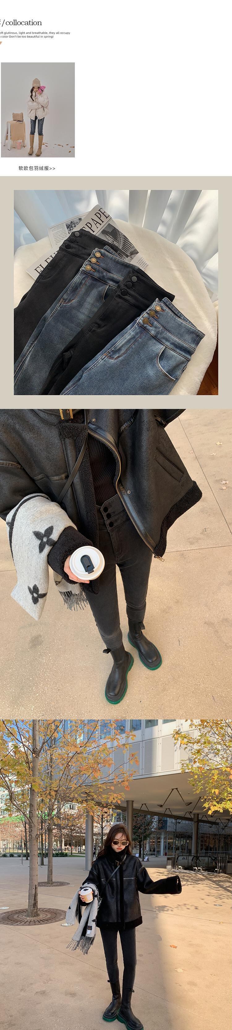 ミスシマリス[ライカジーンズ]-ウエストプラスベルベットストレートレッグパンツレディース冬の小柄で薄手のデザインセンス missi18364994901