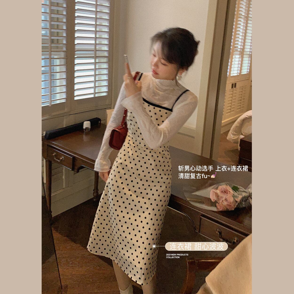 ミスシマリス[スウィートハートボボ]メリノウールトップ/水玉ドレスウィンターウィメンズツーピースセット missi34650188859