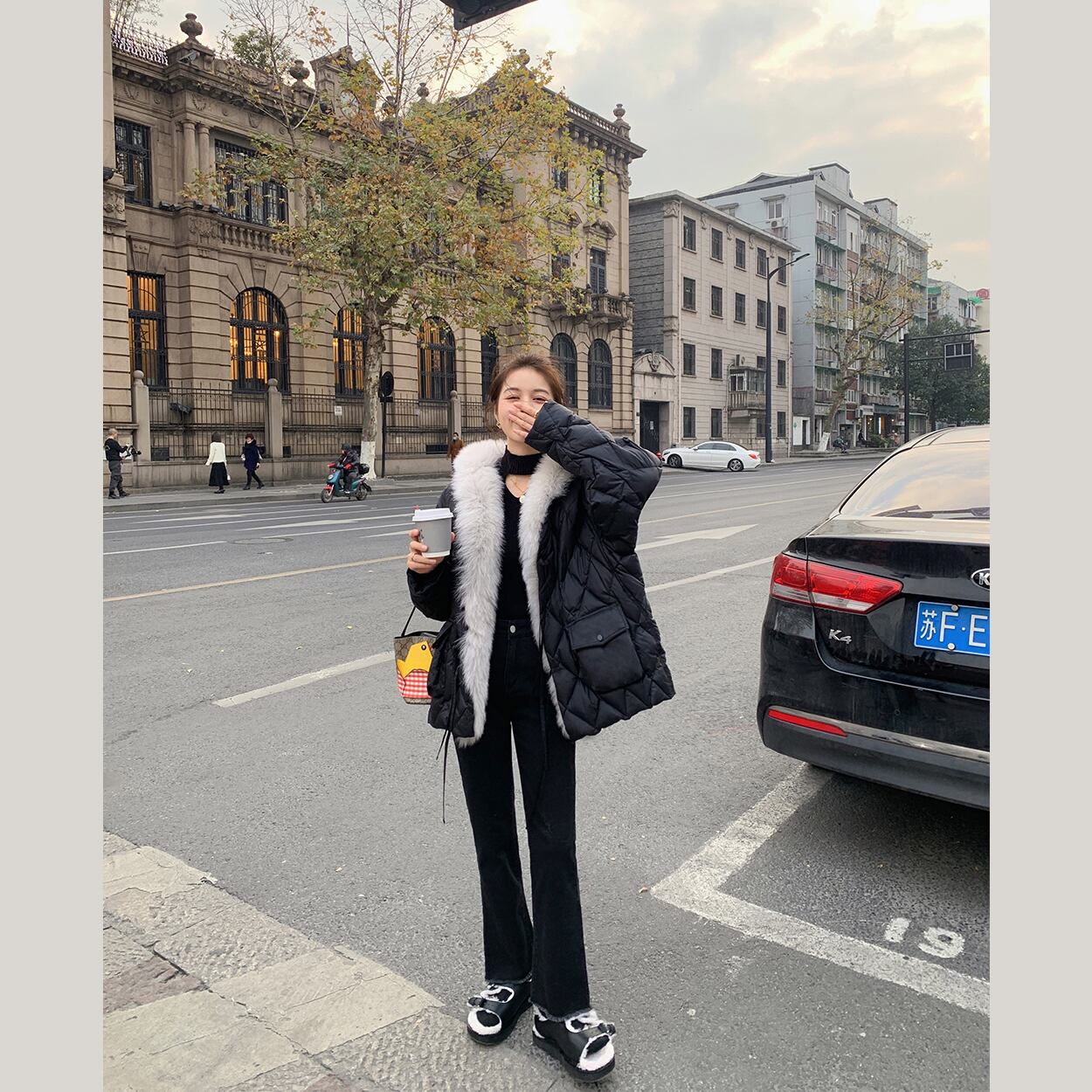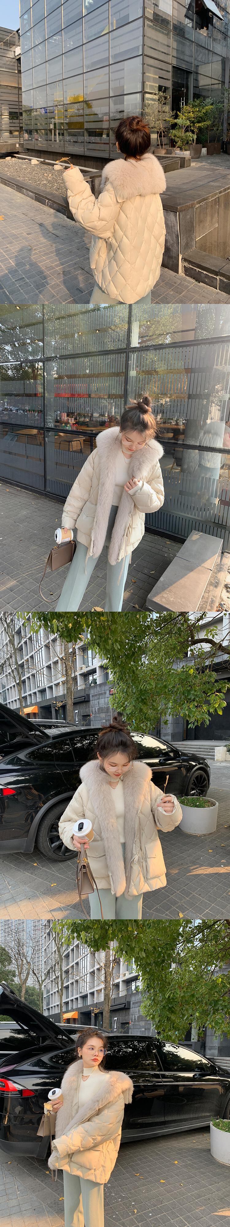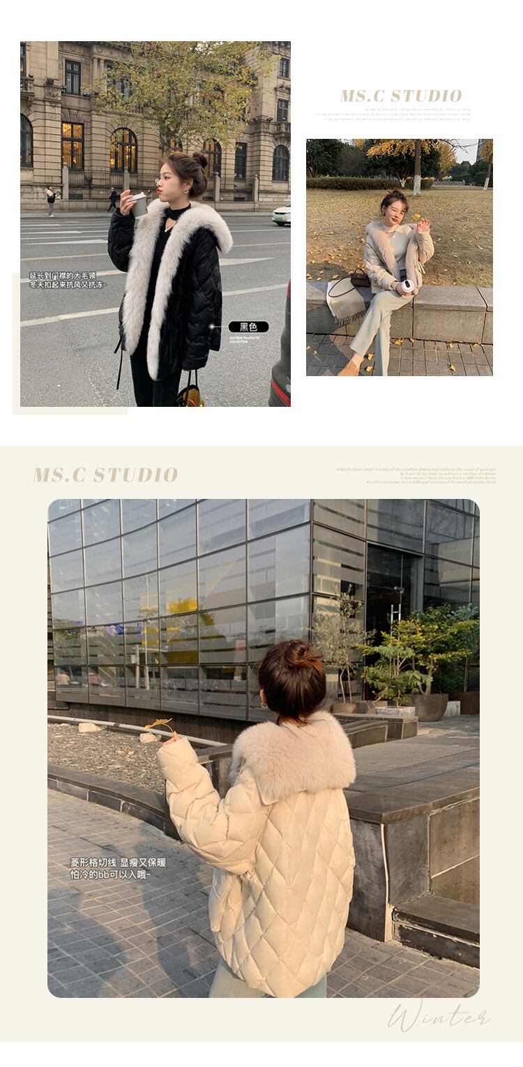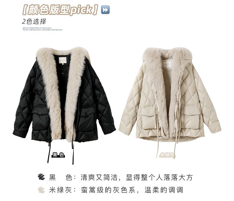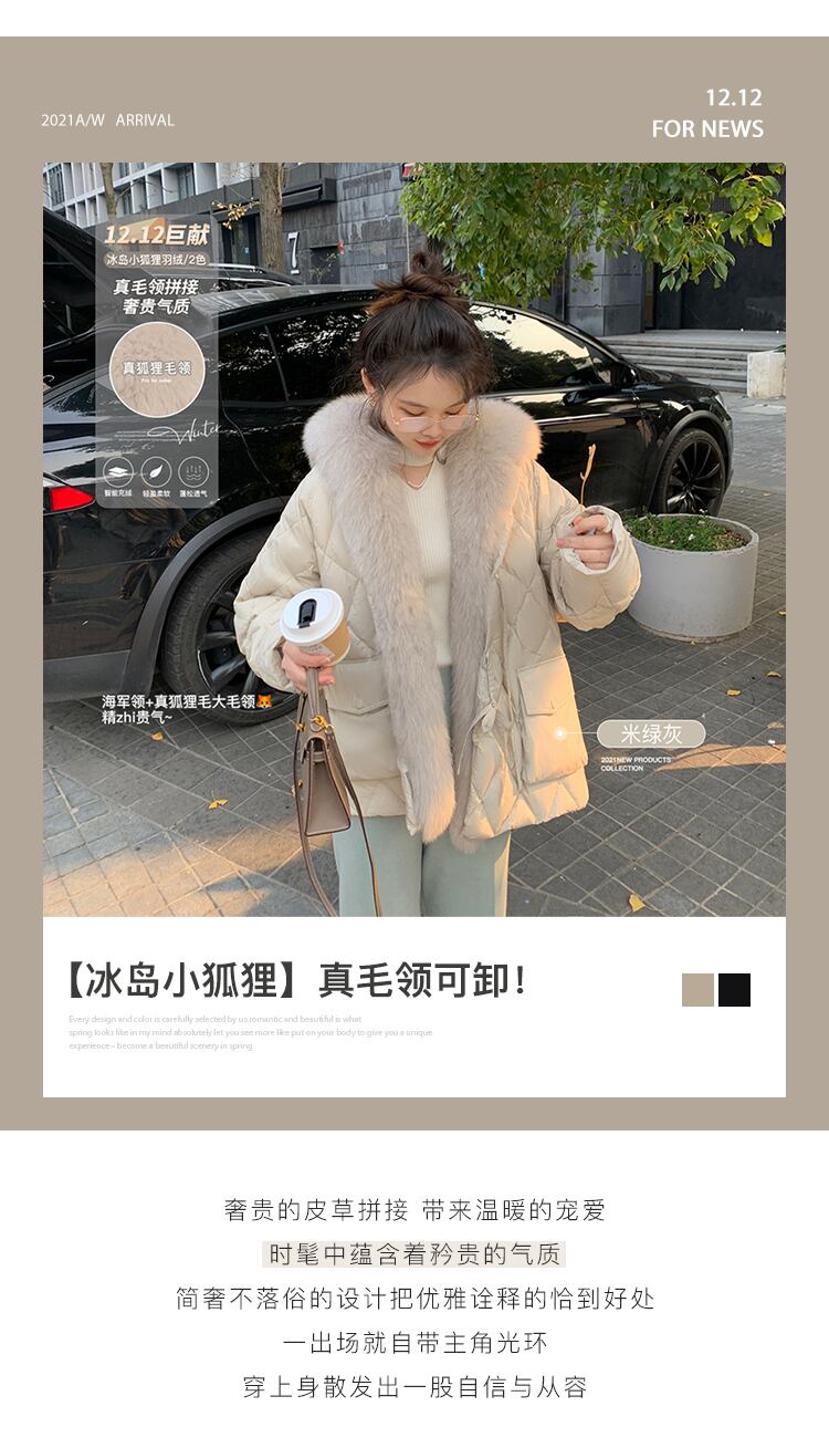 ミスシマリス[アイスランドリトルフォックス]リムーバブルリアルファーカラーダウンジャケットウィンタースモールショートジャケット missi77899897450