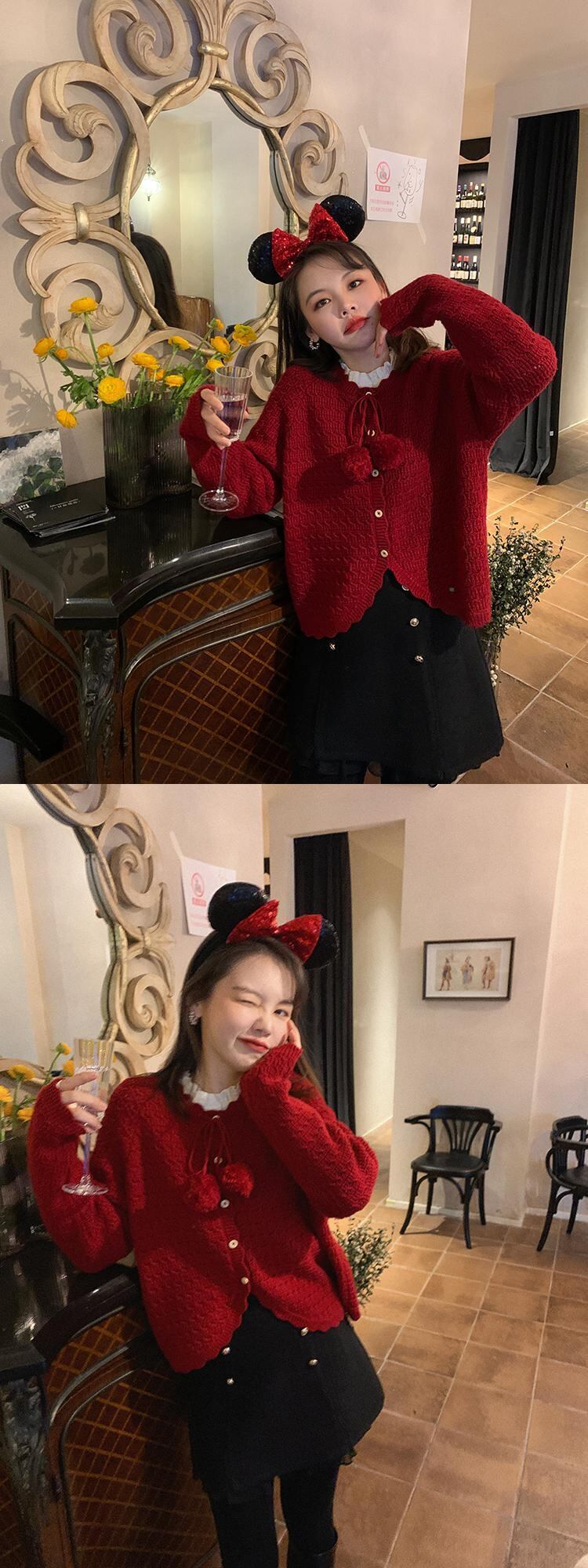 ミスチップマンク[クリスマスボール]オーストラリアのぬいぐるみショートVネック赤いセーターレディースウィンタースモール missi52680221857