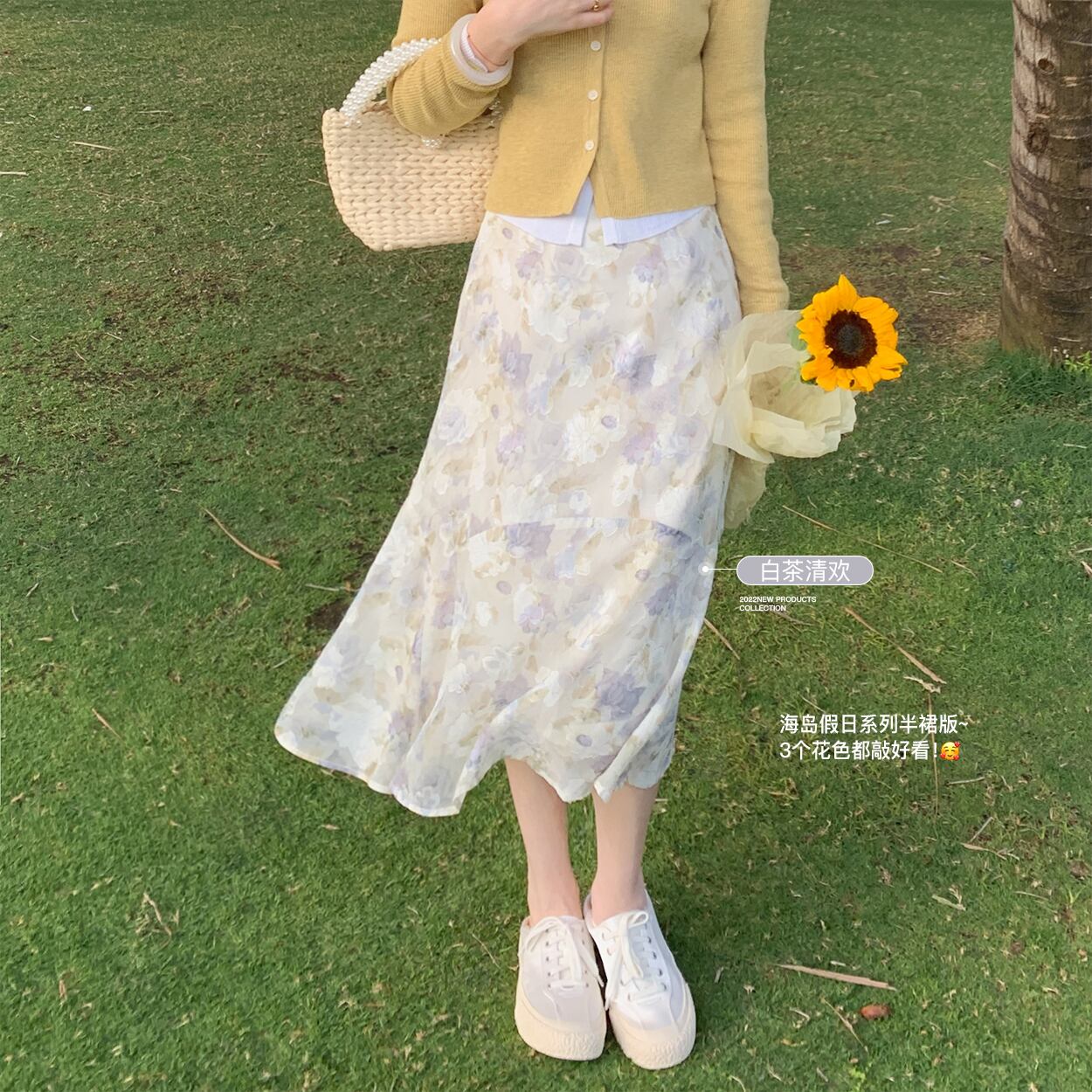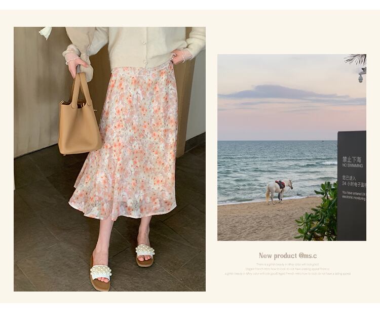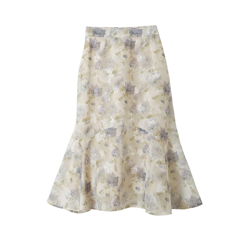 ミスシマリス[アイランドホリデーハーフスカートバージョン]フローラルフィッシュテールスモールウィメンズ早春Aラインロングスカート missi84817023156