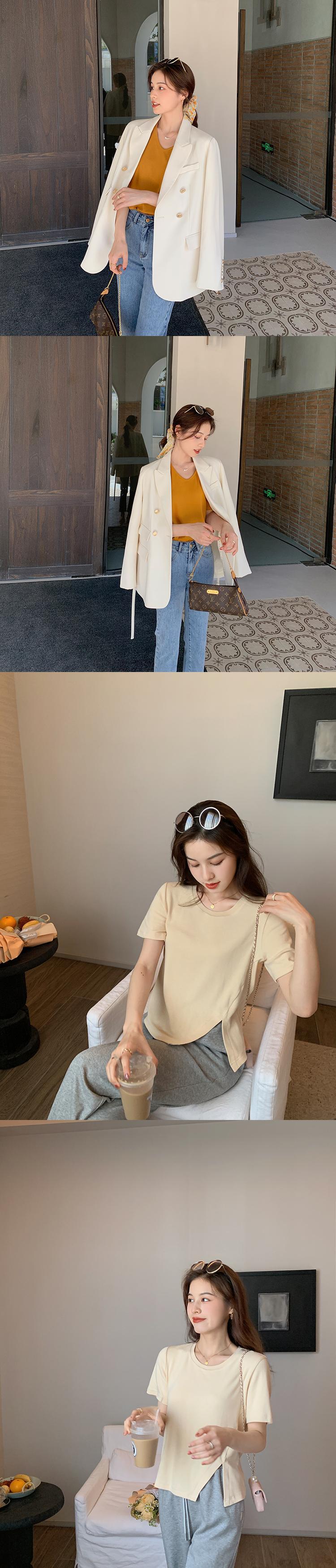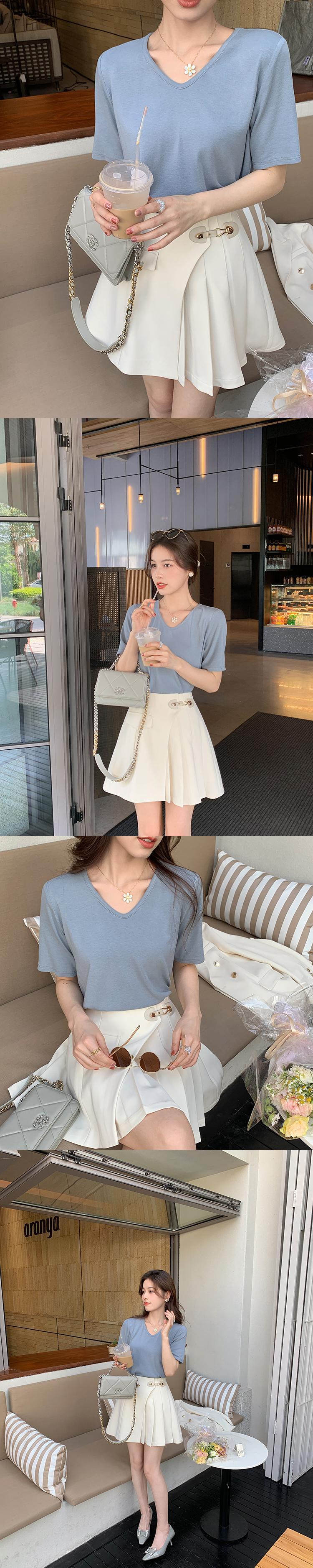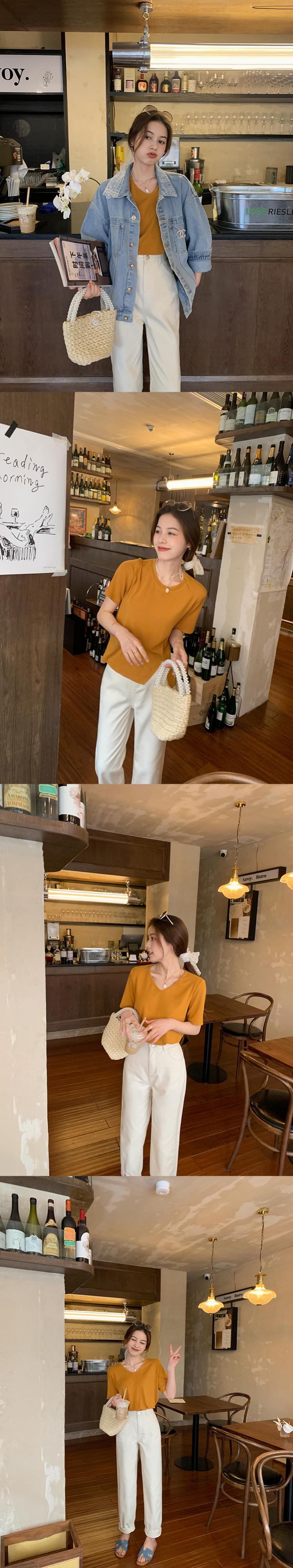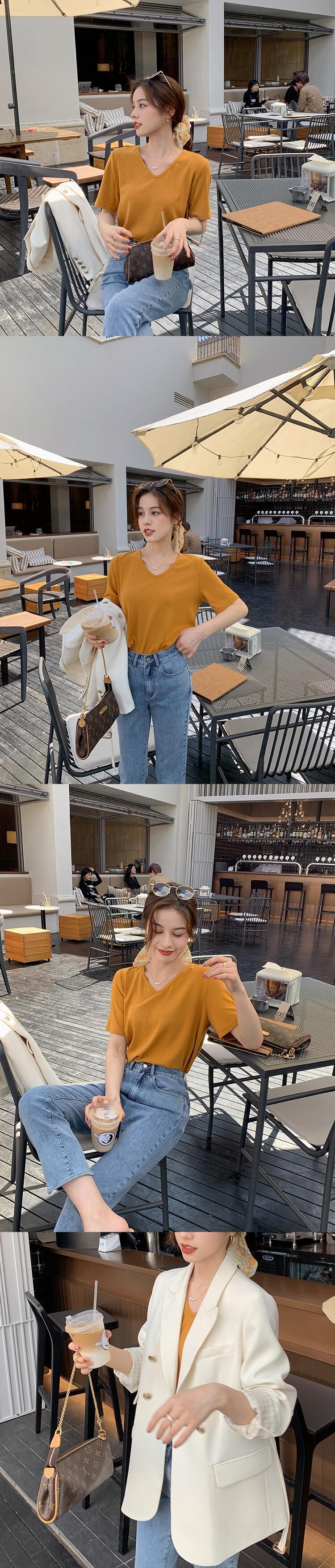 ミスシマリス[ゼリーt]スリムラウンドネック/ Vネック半袖Tシャツレディース春夏インナーボトミングシャツトップス missi93762348017