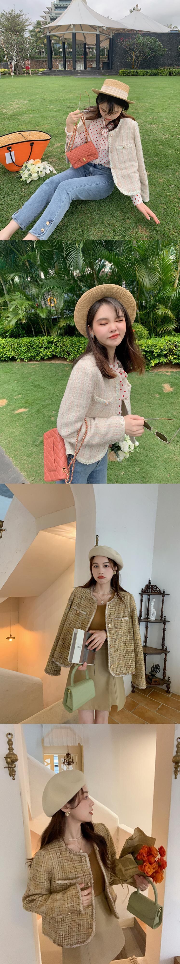 ミスシマリス[マカロン湘郷]カスタマイズ生地!女性のハイエンドスプリングトップショートxiaoxiangコート missi49301513676