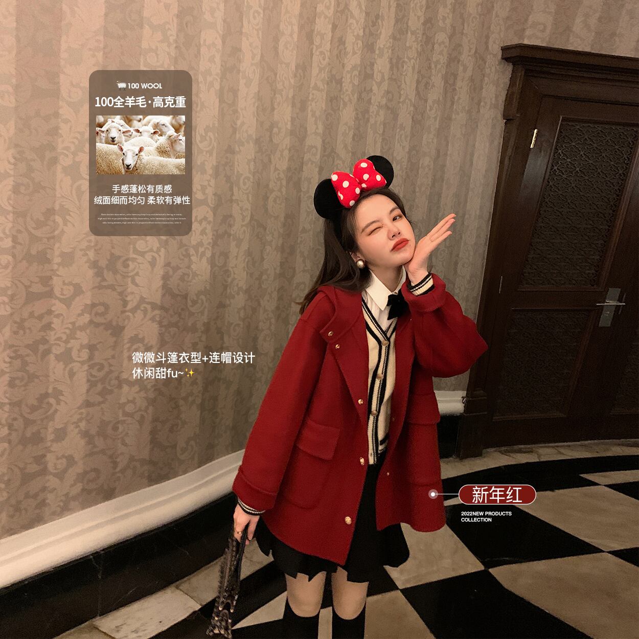 ミスシマリス【今年のマントコート】100ウールレッド両面ウールウィメンズウィンターロングウールコート missi38417320572