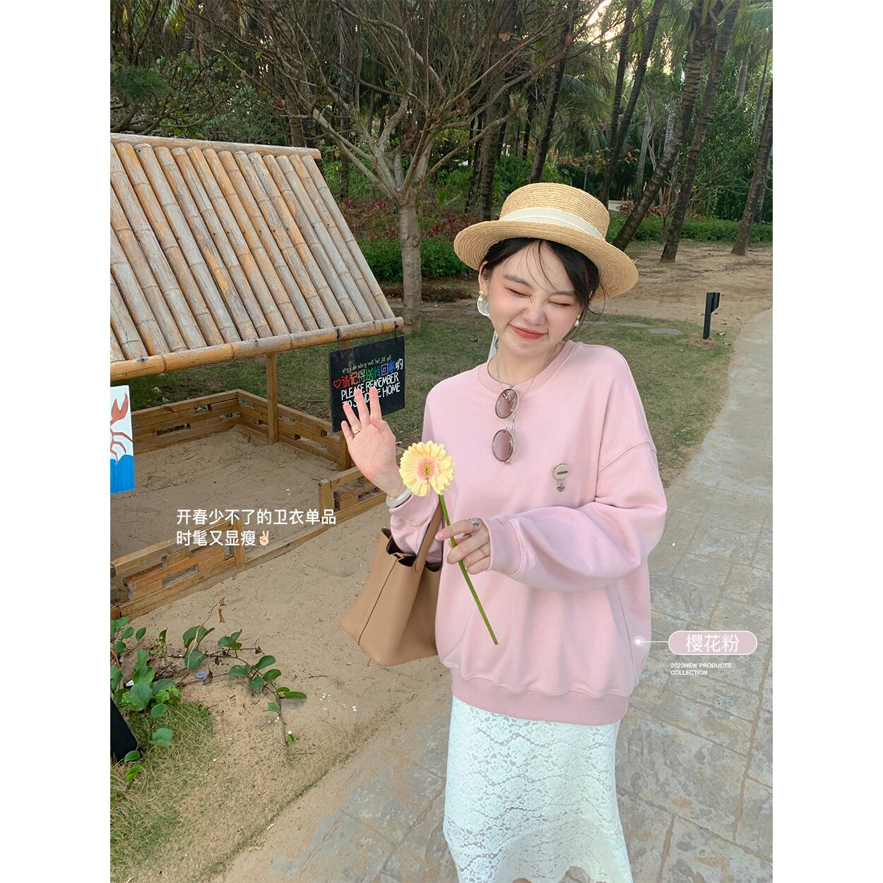 ミスシマリス[ステッカーセーター]自家製ピンクセーター小さなルーズプルオーバーラウンドネックトップ女性の春 missi37909180004
