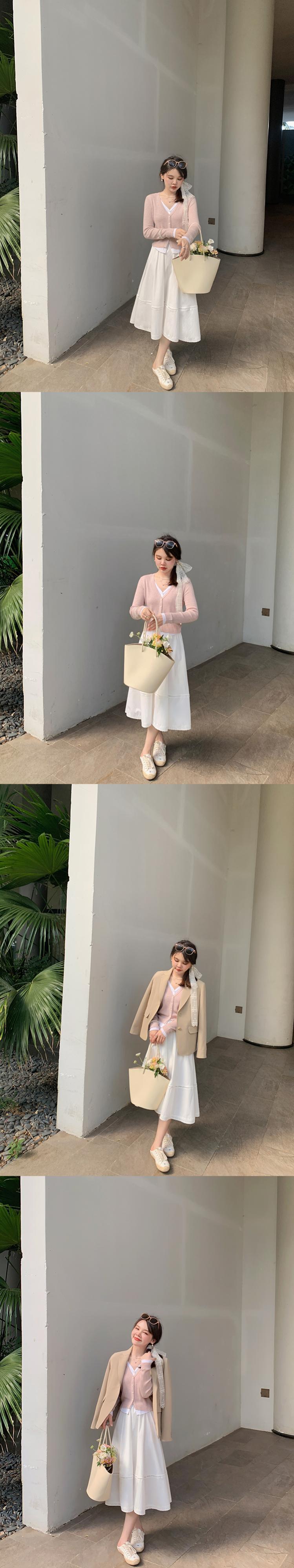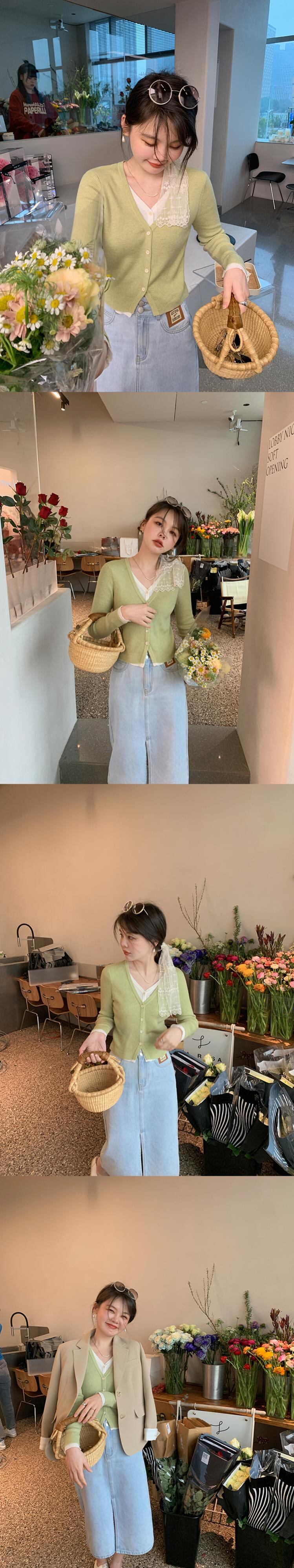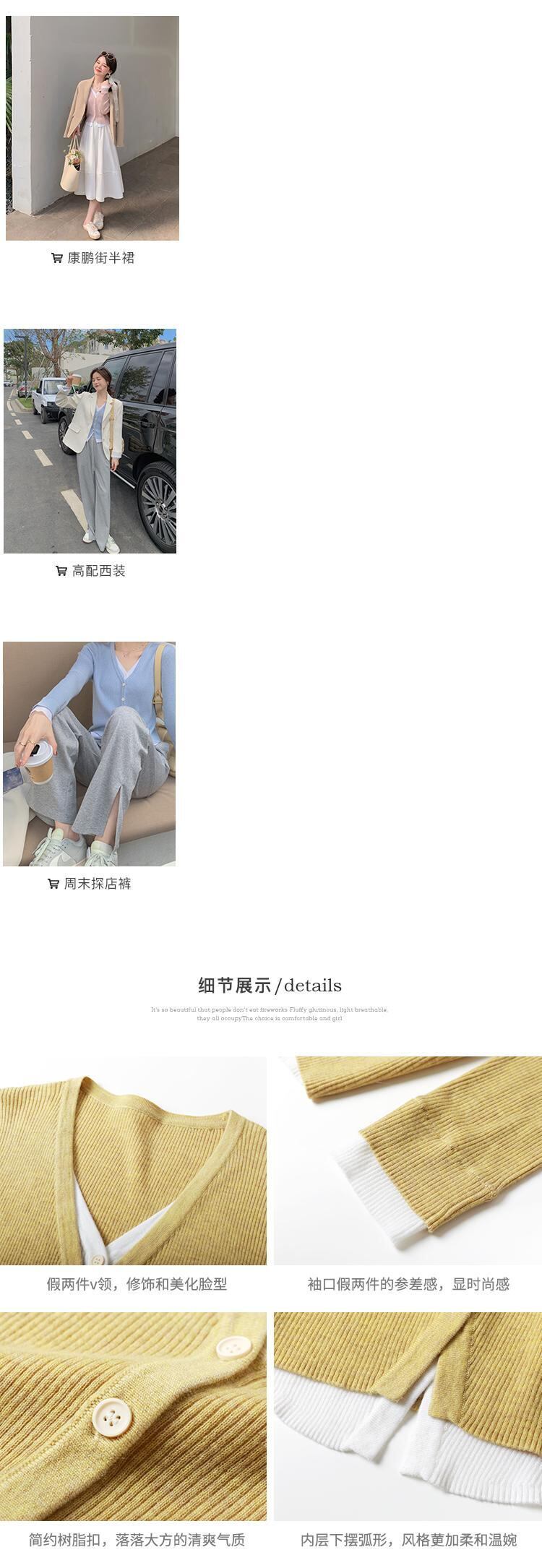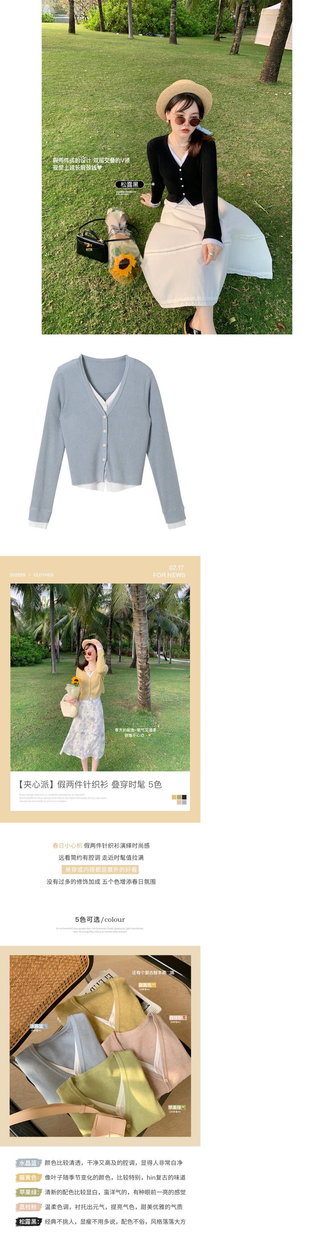 ミスシマリス【サンドイッチパイ】フェイクツーピースVネックニットカーディガン早春風インナーボトミングシャツトップス missi26039256878