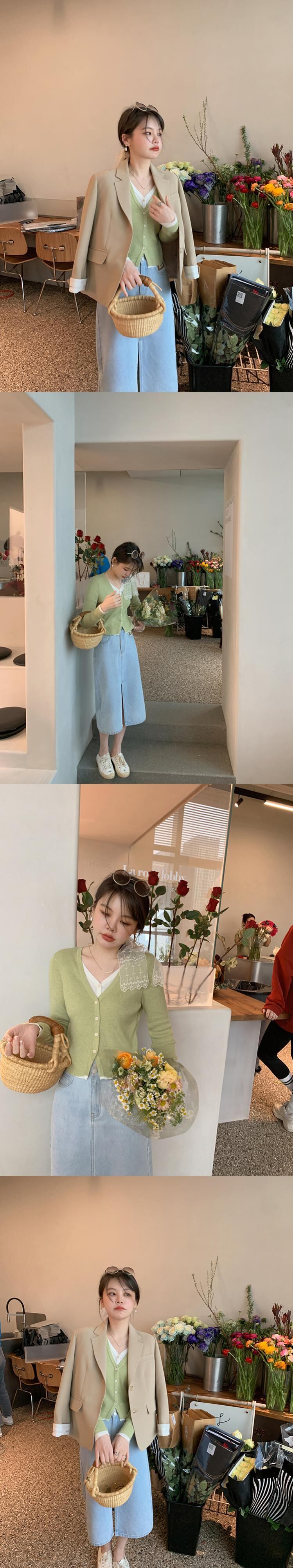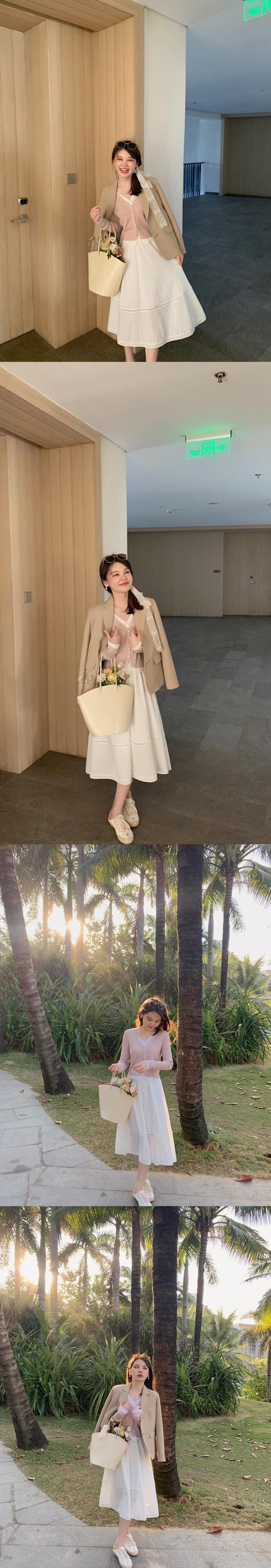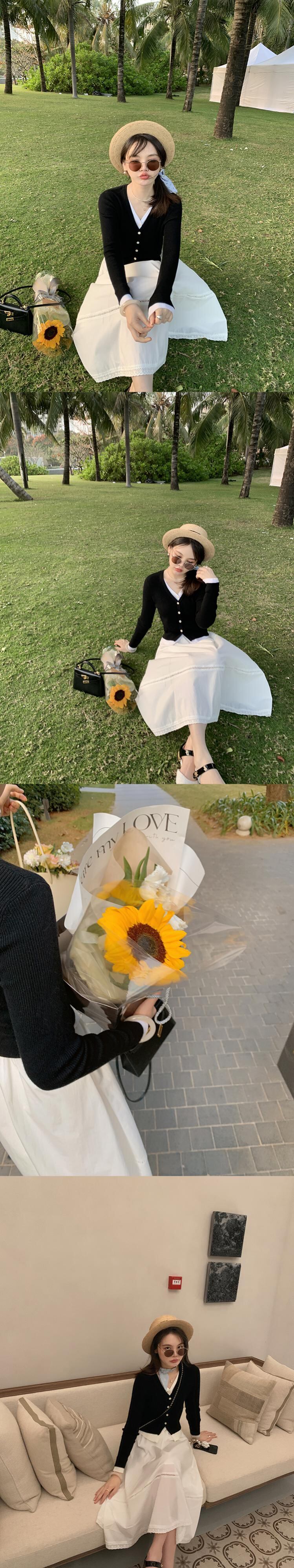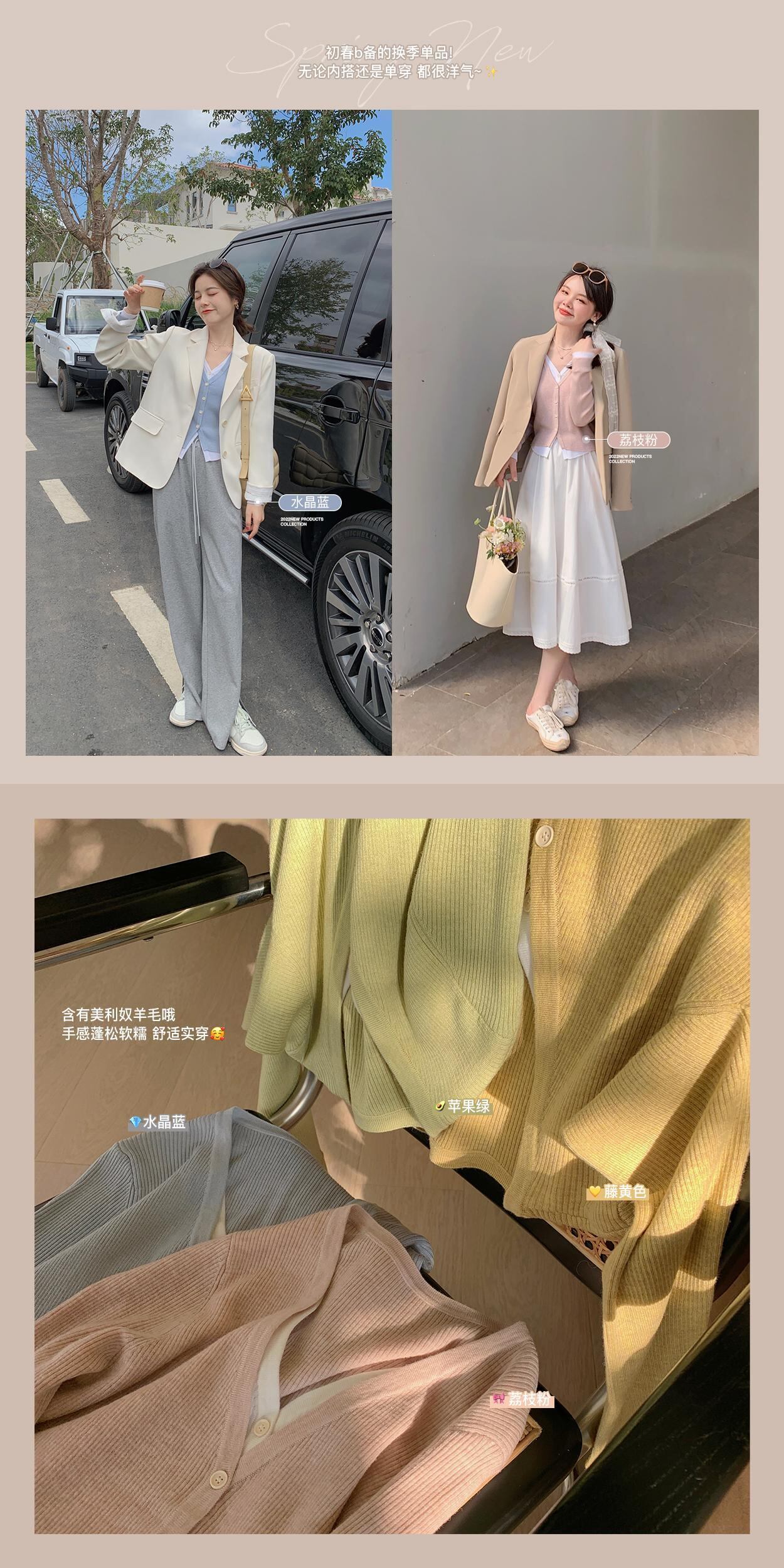 ミスシマリス【サンドイッチパイ】フェイクツーピースVネックニットカーディガン早春風インナーボトミングシャツトップス missi26039256878