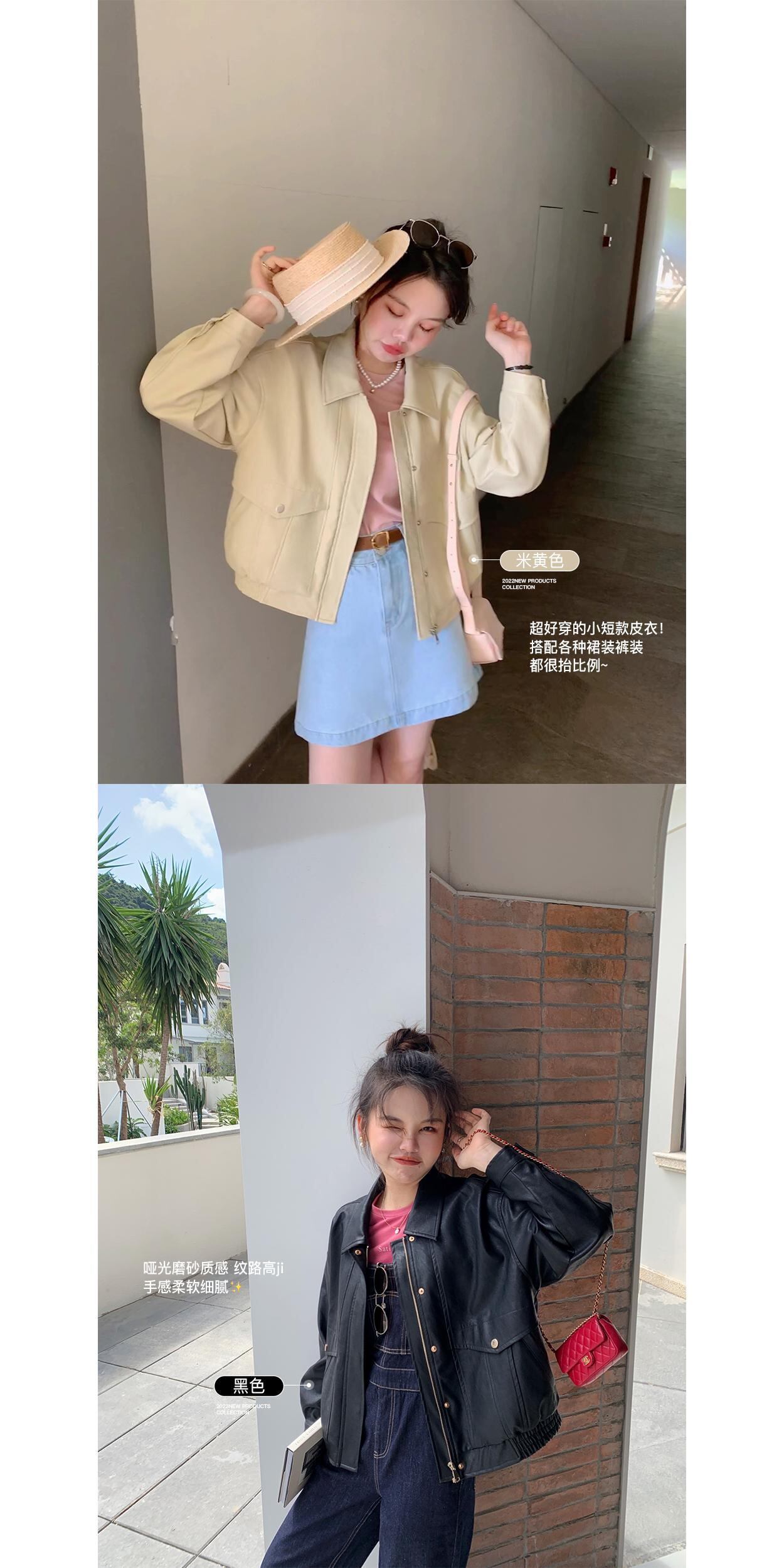 ミスシマリス[クールカバーレザージャケット]香港スタイルレトロショートジャケットスモールウィメンズスプリングオールマッチワークウェアジャケット missi39203209543