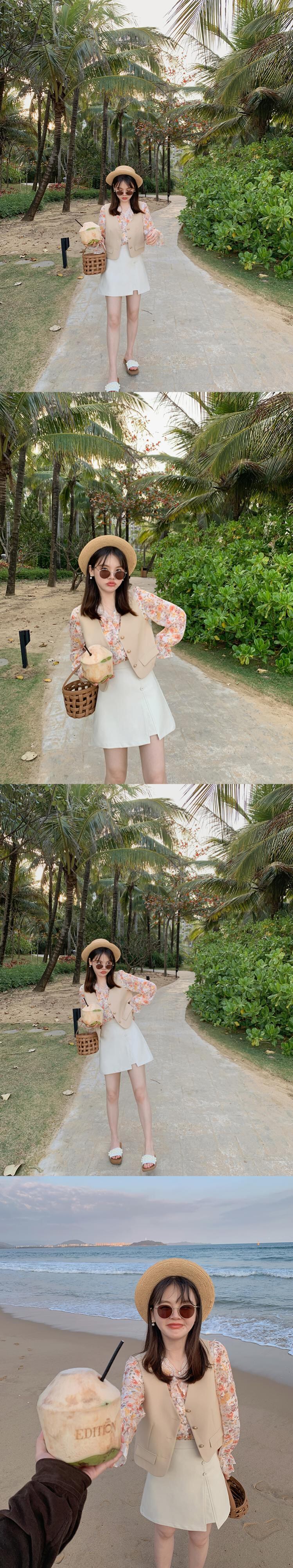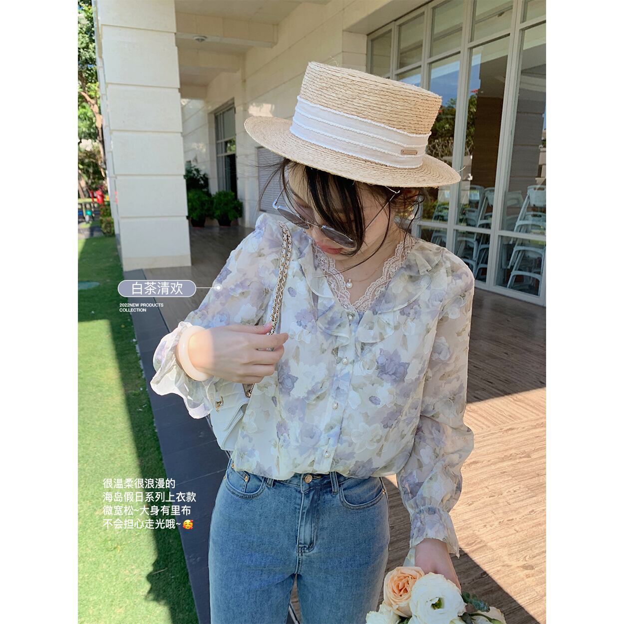 ミスシマリス[アイランドホリデートップバージョン]レースVネックフローラルソルトシャツ早春スモール missi1616501100