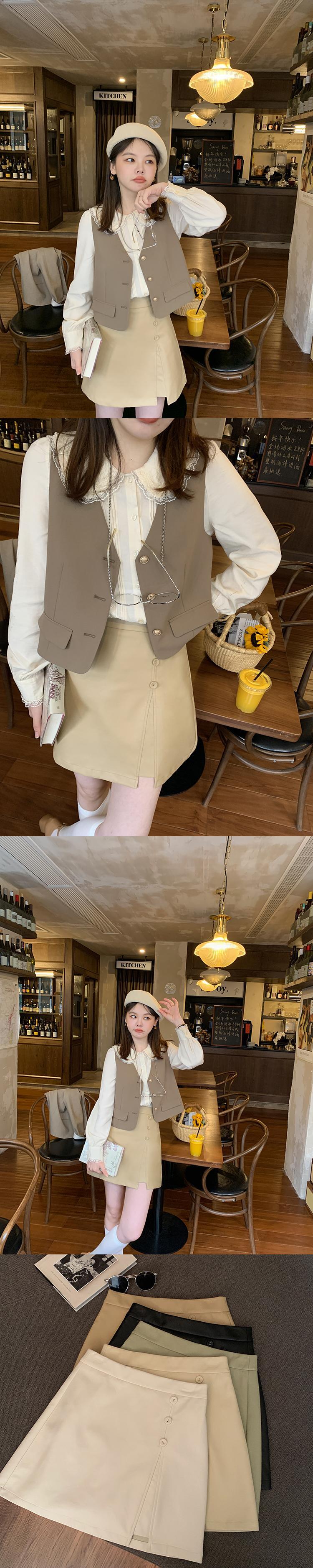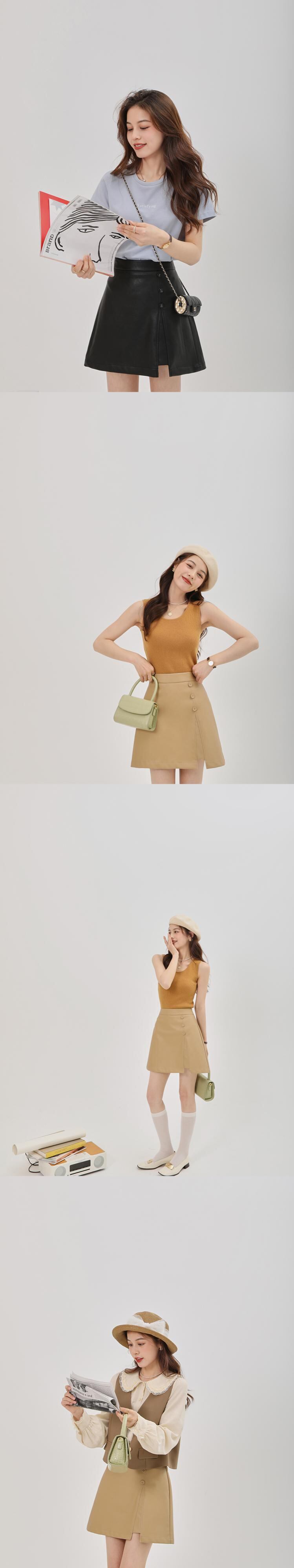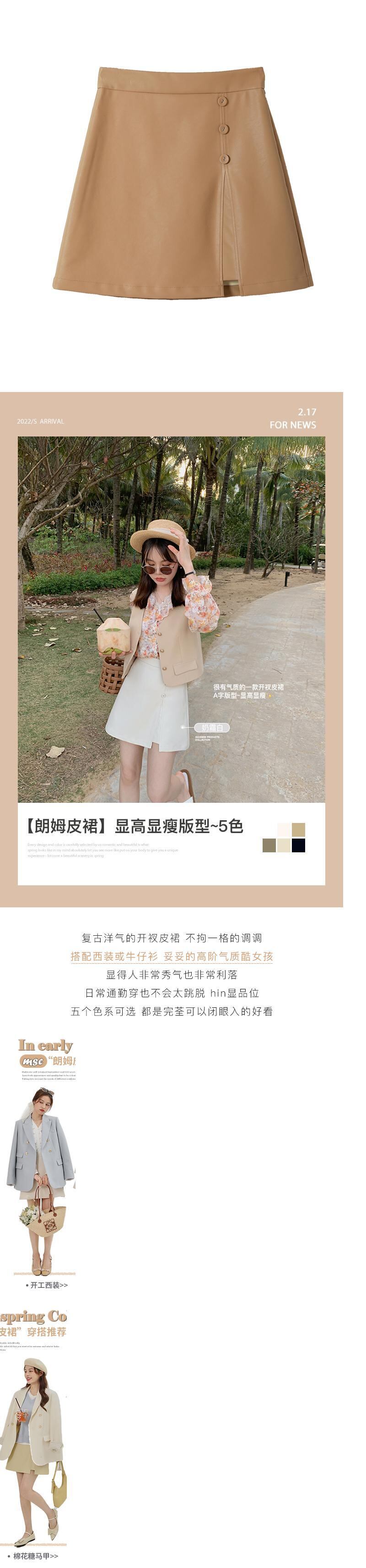 ミスシマリス[ラムレザースカート]小さなAラインスカートの裏地にアンチライティングパンツが早春の女性用スプリットスカート missi38814646110