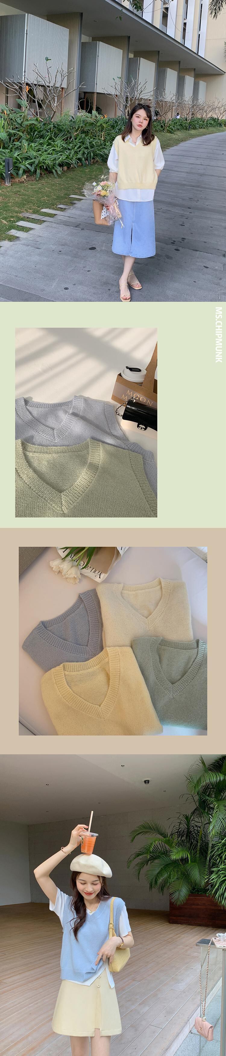 ミスシマリス[マシュマロベスト]モヘアニットベストレディース早春Vネックスリットトップ missi11897100980