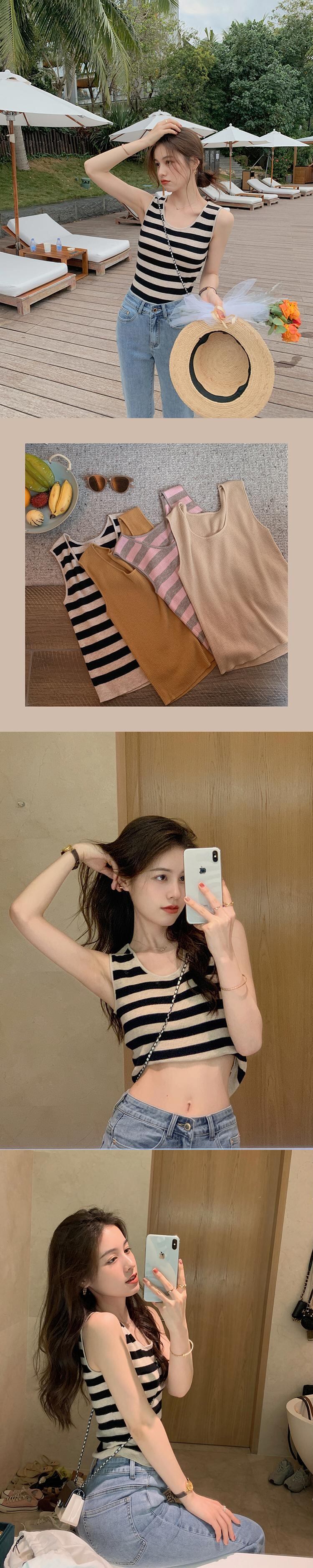 ミスシマリス【二次ニットベスト】ミルクストライプニットボトムシャツノースリーブスリングをカバー missi73925273542