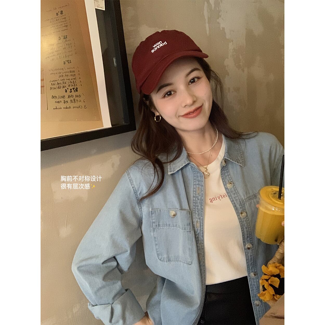 ミスシマリス【ハイストリートデニムシャツ】レトロリテラリーデニムシャツレディース早春長袖オールマッチトップス missi72370045599