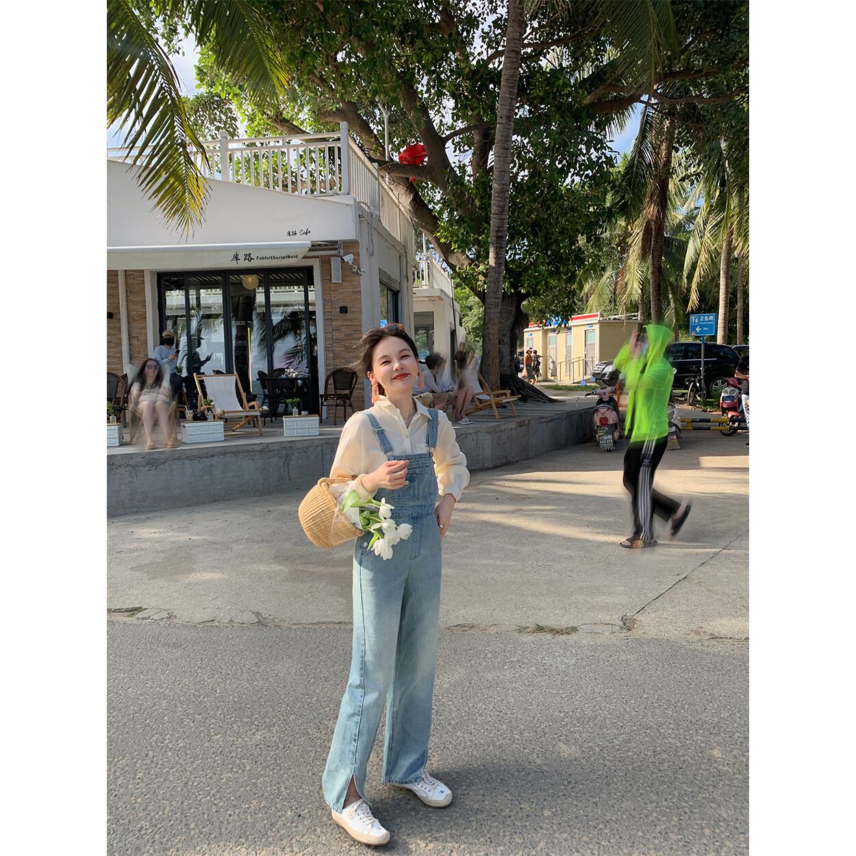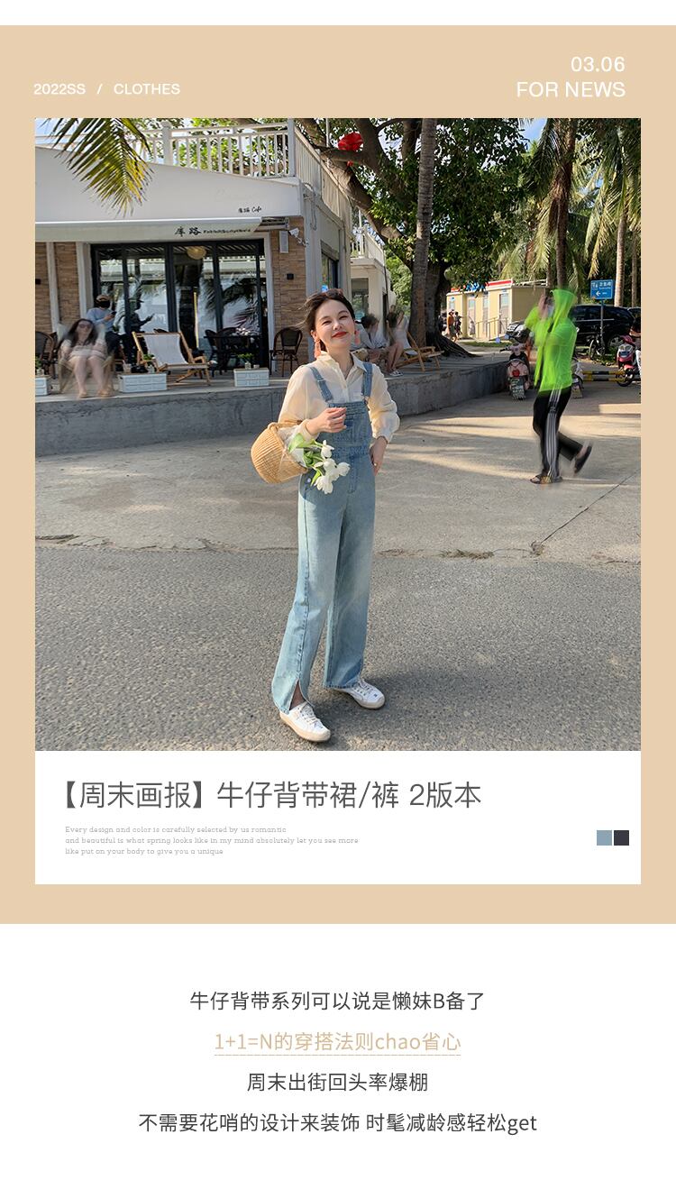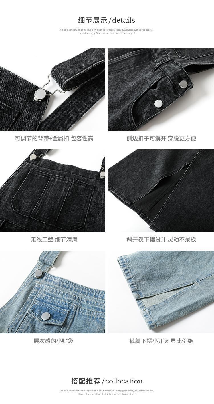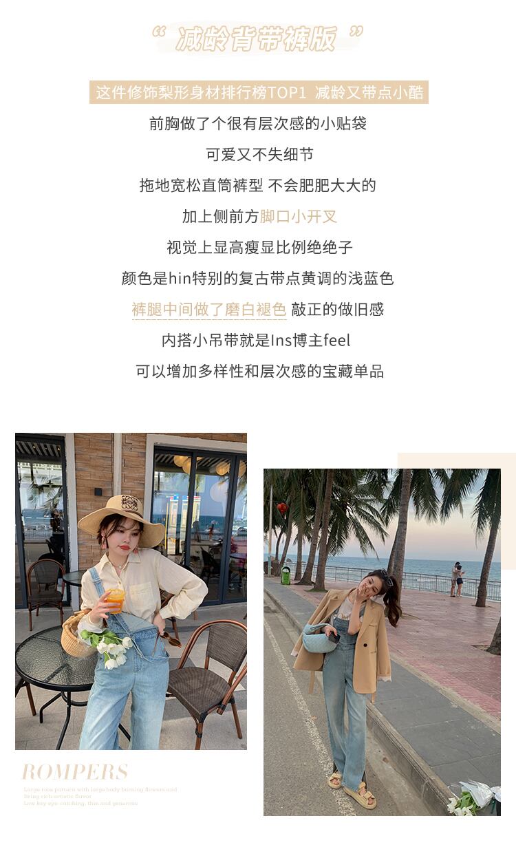ミスシマリス[週末の写真]デニムサスペンダースカート/パンツ、小さくて薄い、ハイウエストのストレートレッグパンツの女性 missi11882398177