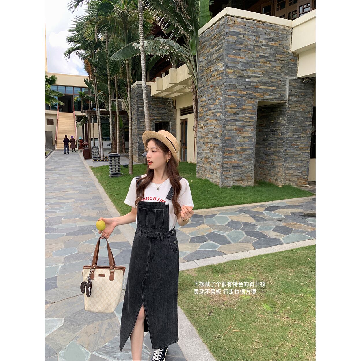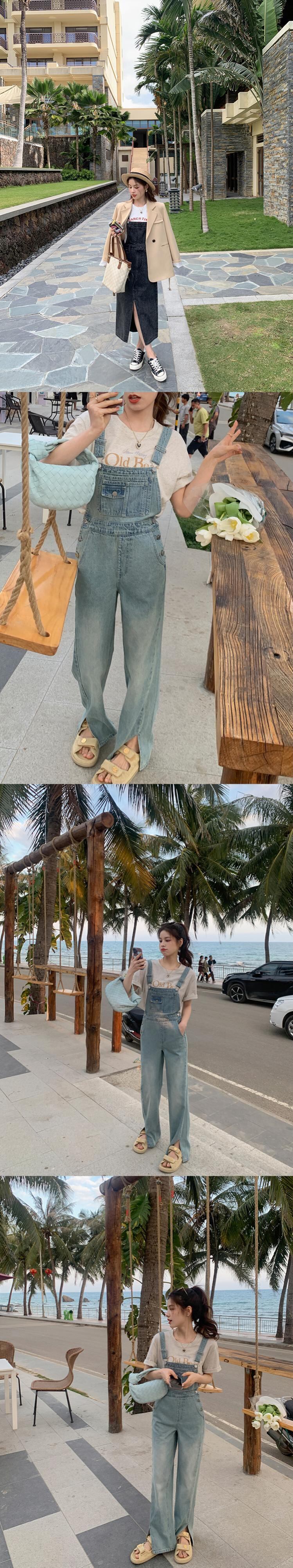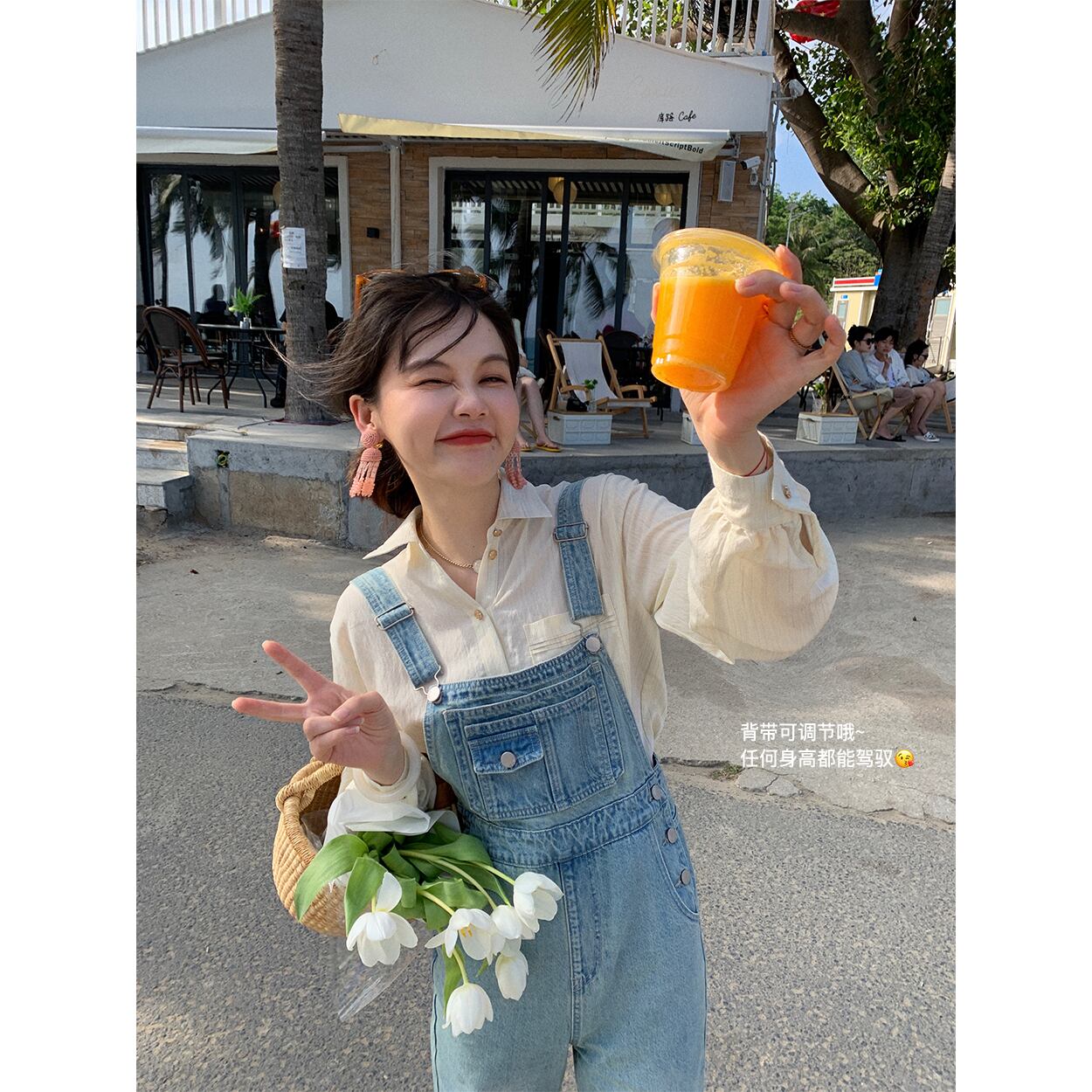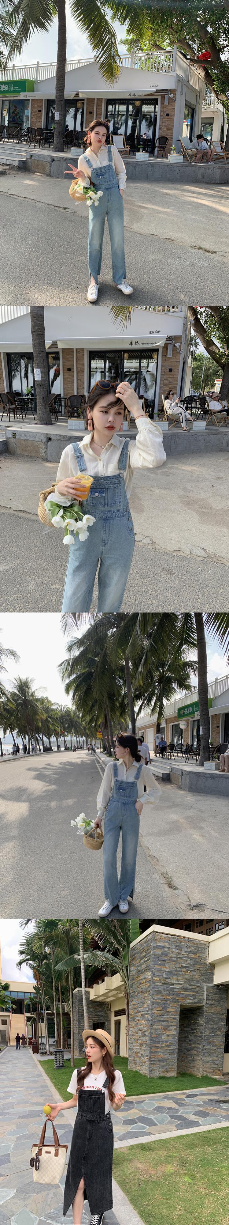 ミスシマリス[週末の写真]デニムサスペンダースカート/パンツ、小さくて薄い、ハイウエストのストレートレッグパンツの女性 missi11882398177