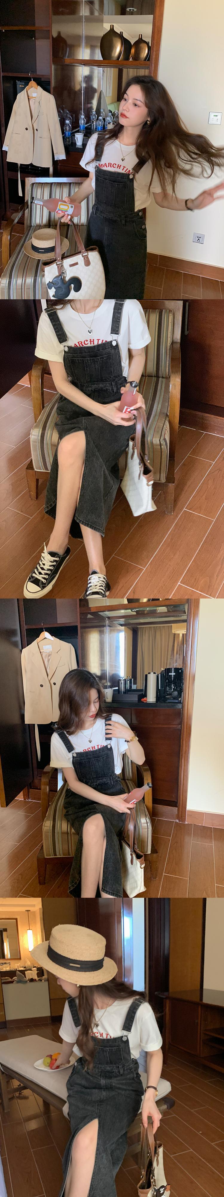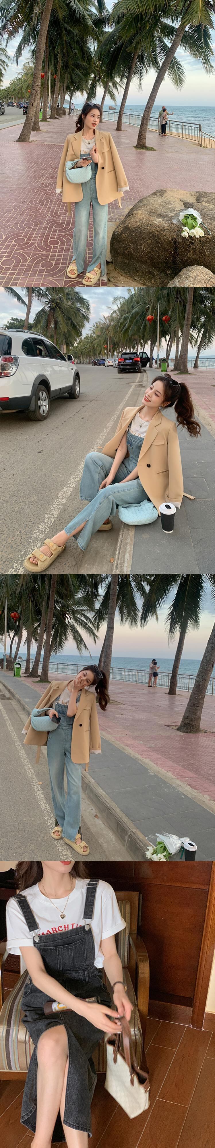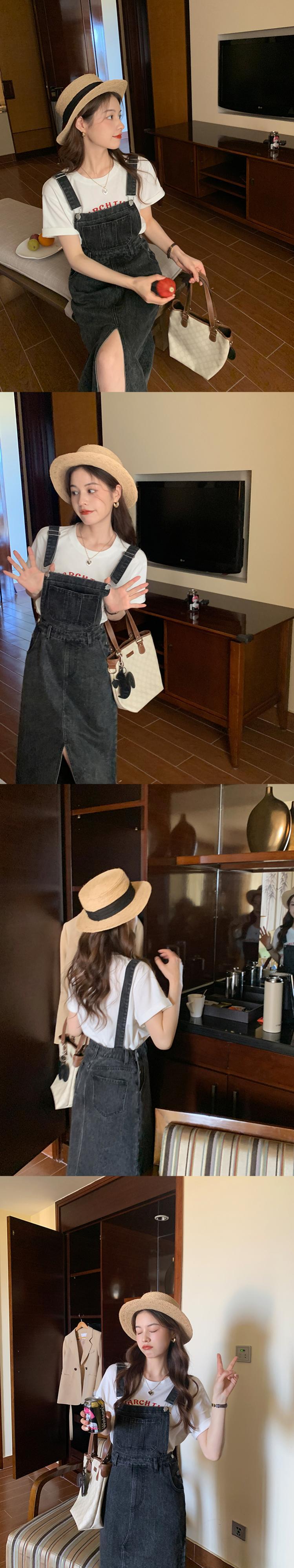 ミスシマリス[週末の写真]デニムサスペンダースカート/パンツ、小さくて薄い、ハイウエストのストレートレッグパンツの女性 missi11882398177