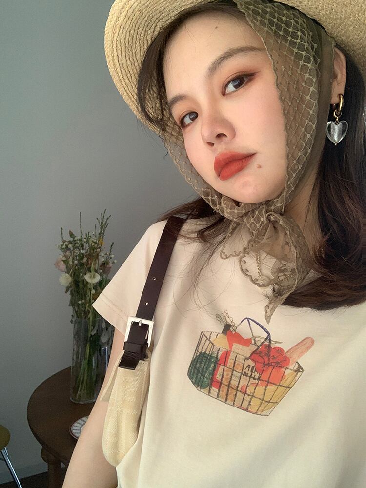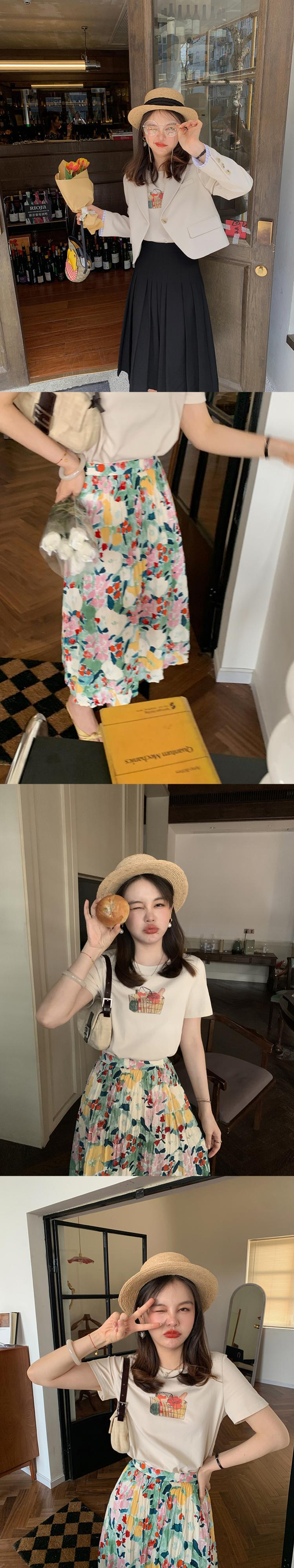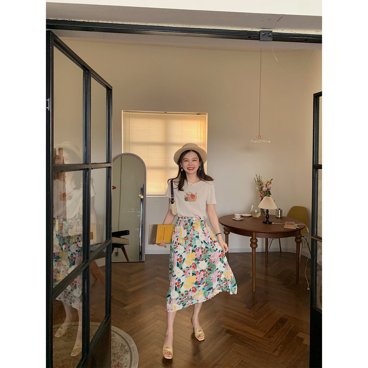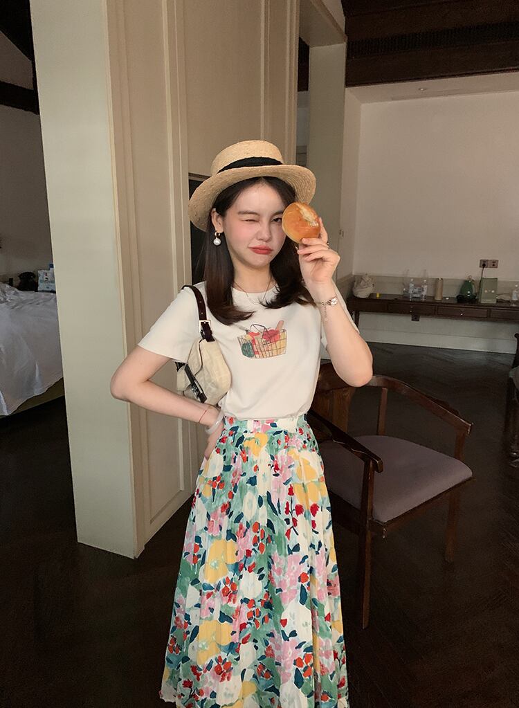 ミスシマリス[ピクニック日記2点セット]プリントTシャツ/油絵スカートサマースモールAラインスカート missi98183146296
