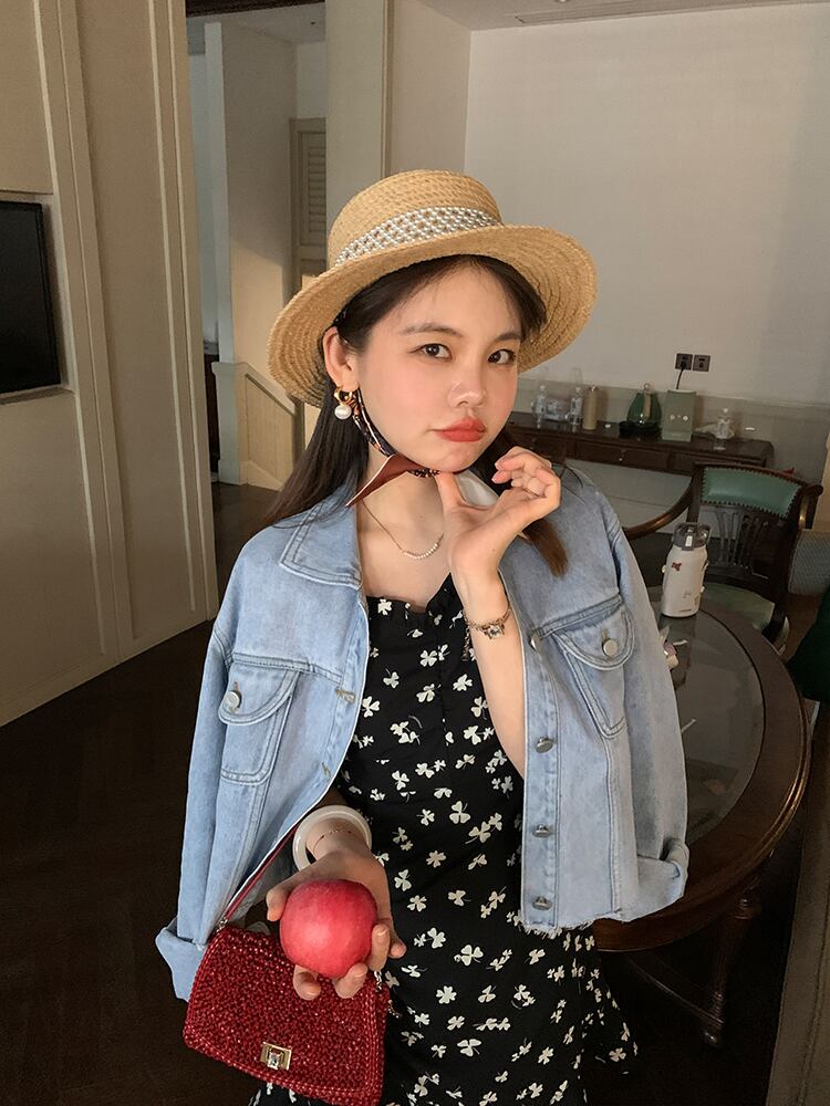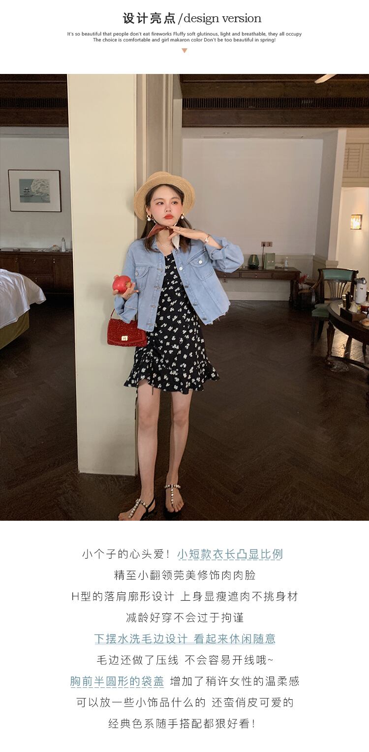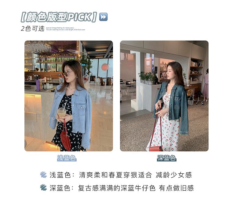 ミスシマリス【渋谷区】レトロデニムショートジャケット女性春夏スモールブルー薄手ジャケット missi18204665853