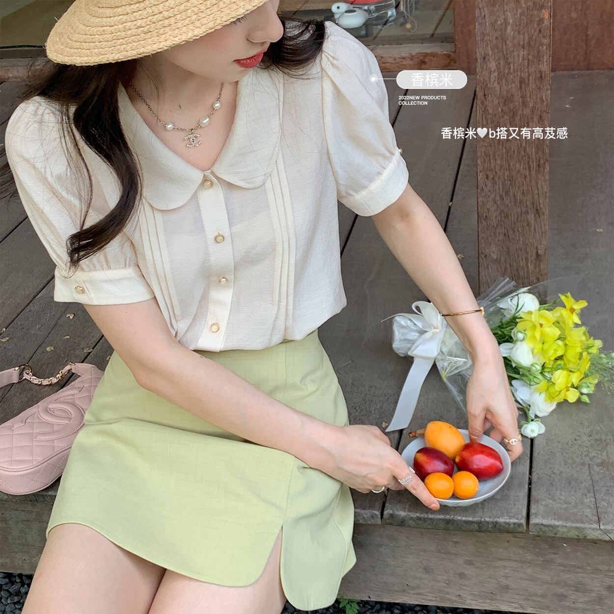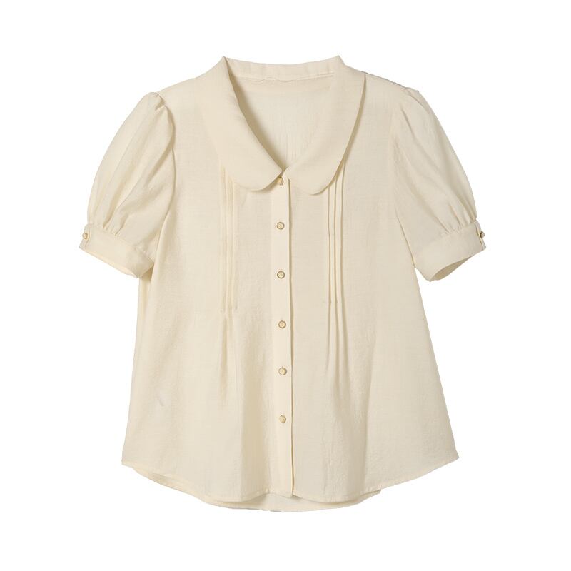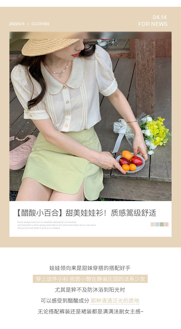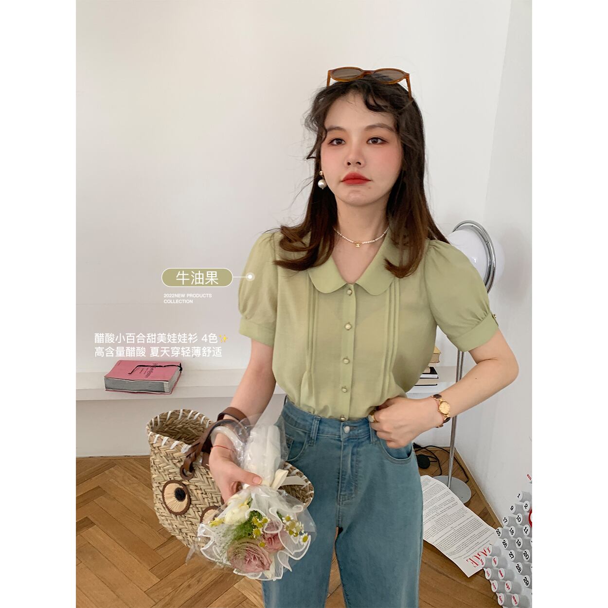 ミスシマリス【酢酸さゆり】ドールカラー半袖シャツレディースサマーテンペラメントフレンチVネックトップ missi32398019537