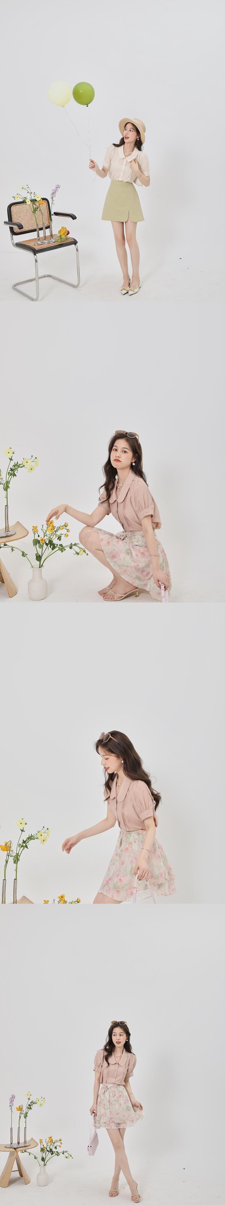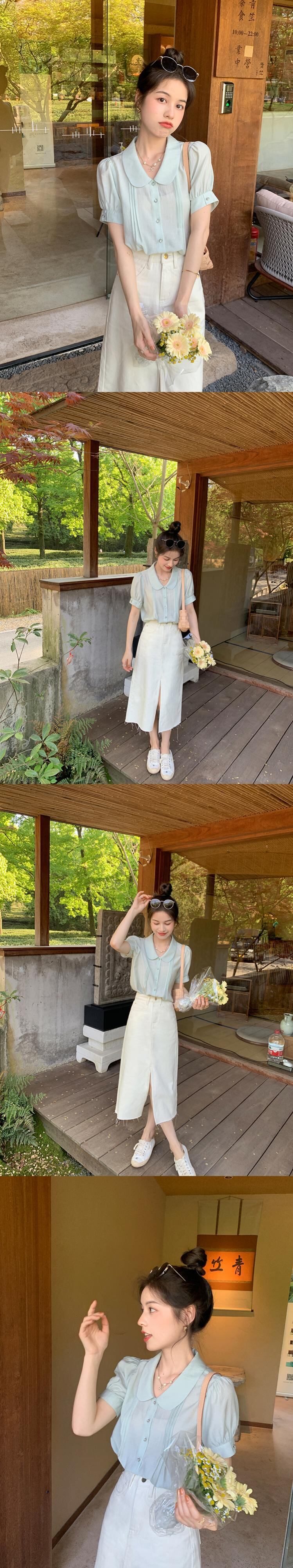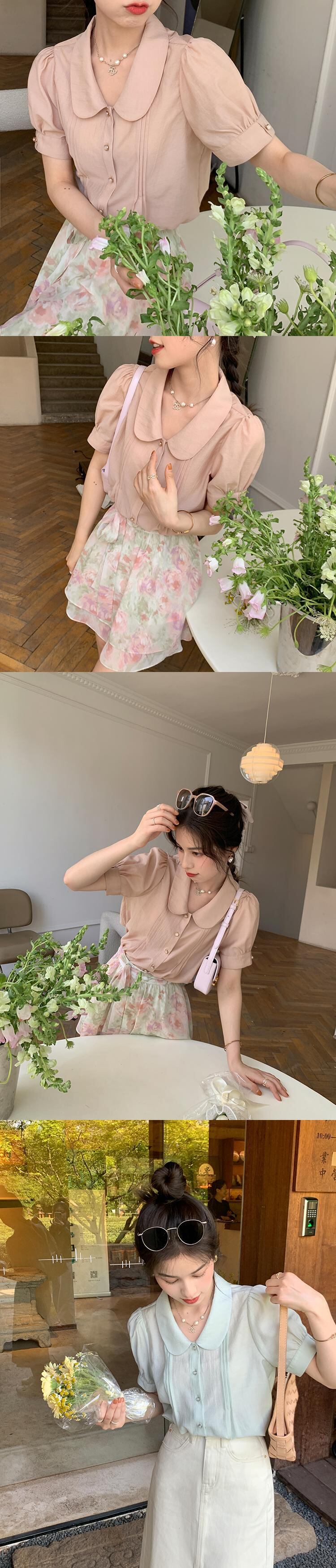 ミスシマリス【酢酸さゆり】ドールカラー半袖シャツレディースサマーテンペラメントフレンチVネックトップ missi32398019537
