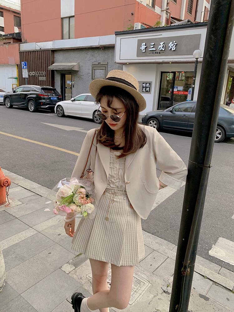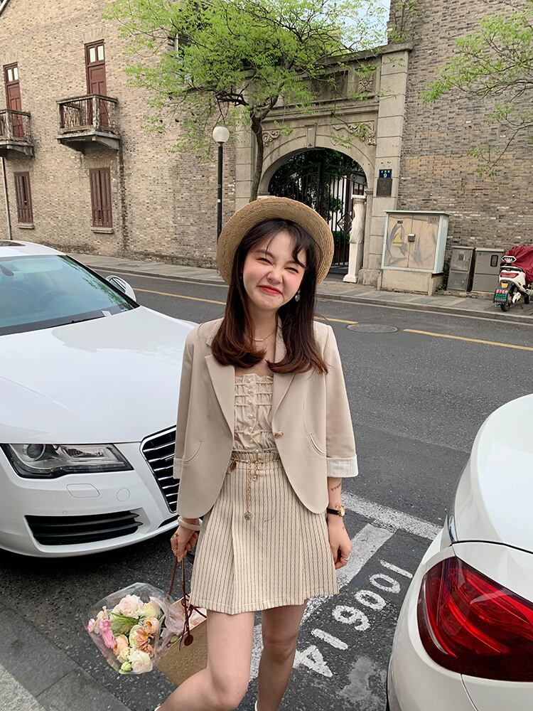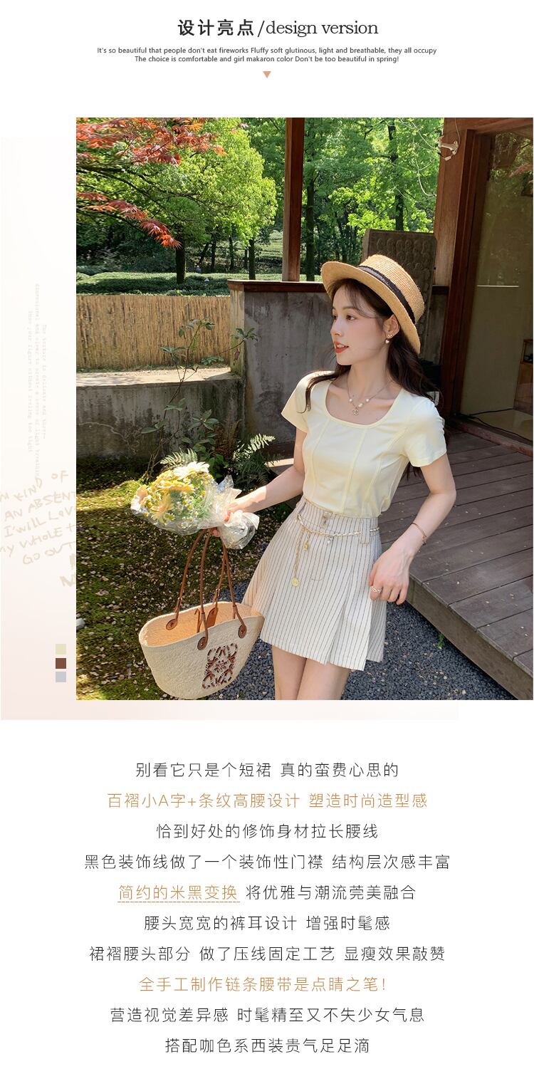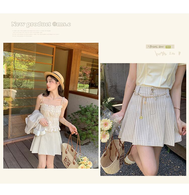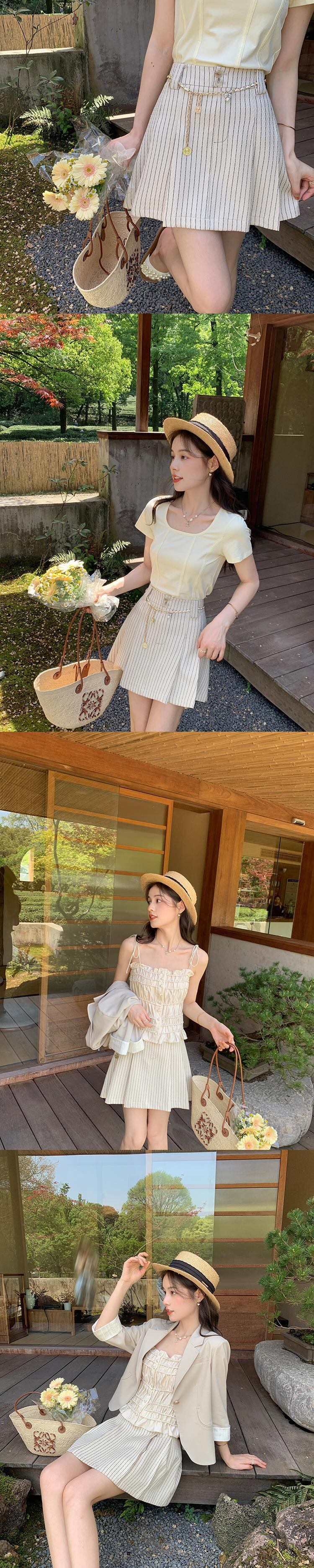 ミスチップマンク【ゴールドチェーンプリーツスカート】ストライプAラインショートスカートサマースモールウエストプリーツスカート missi86987810594