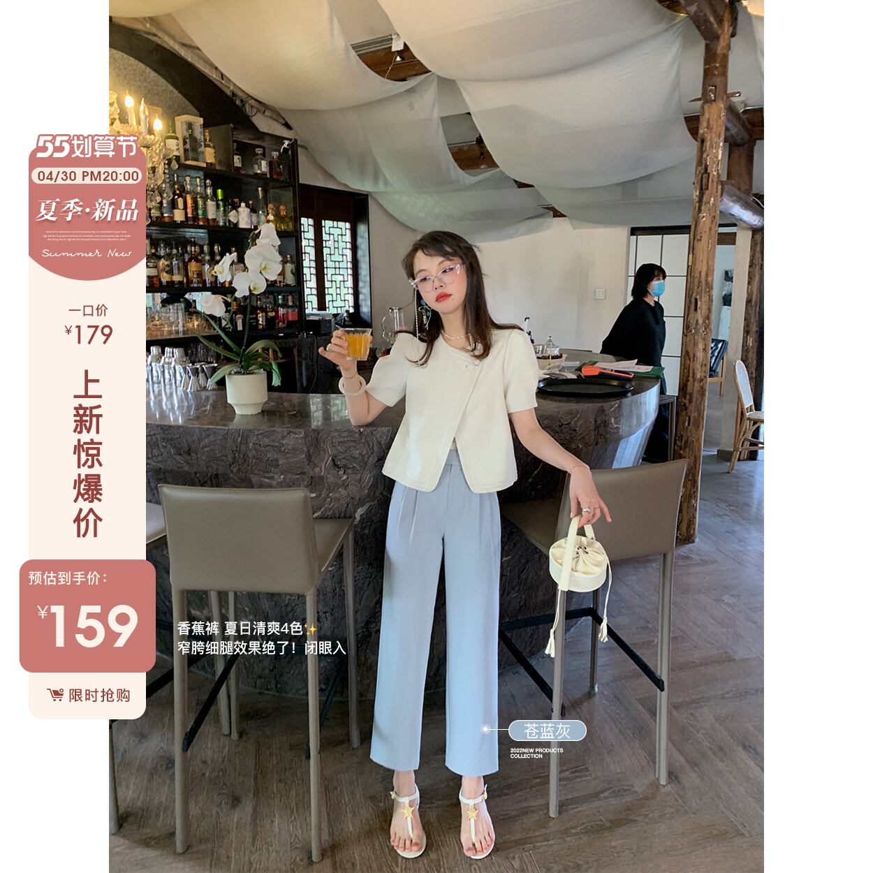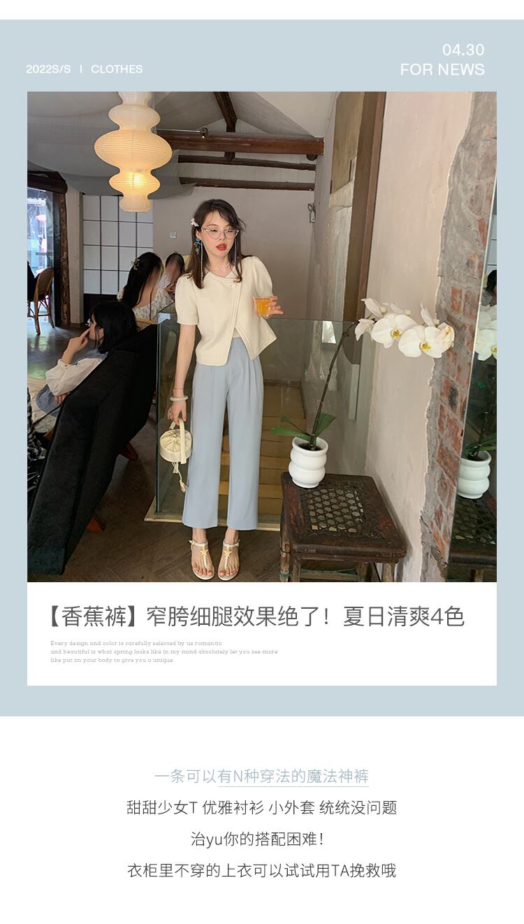 ミスチップマンク【バナナパンツ】夏の薄手9点ワイドレッグパンツレディーススモールハイウエストストレートカジュアルパンツ missi23013019404