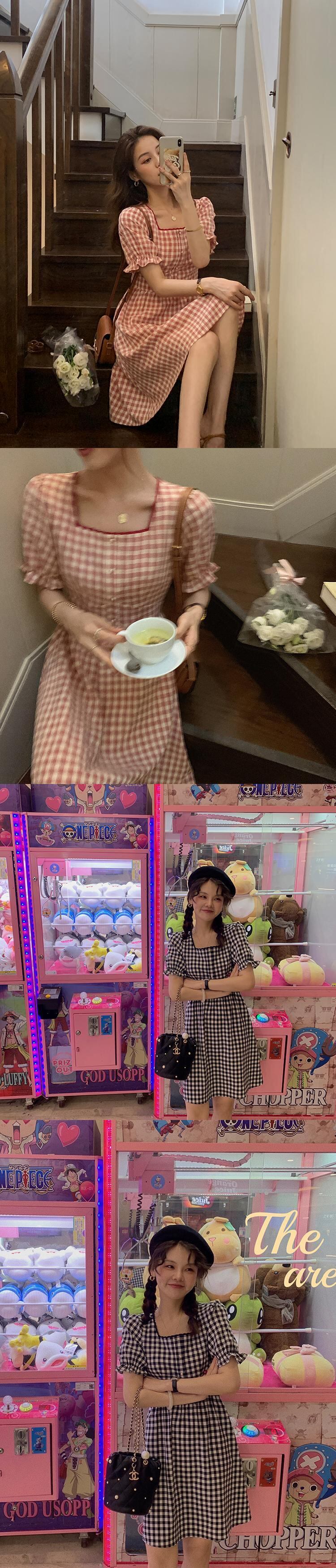 色:赤いチェック柄のドレスが入荷しました,グリーンチェック柄ワンピース入荷,黒のチェック柄ワンピース入荷