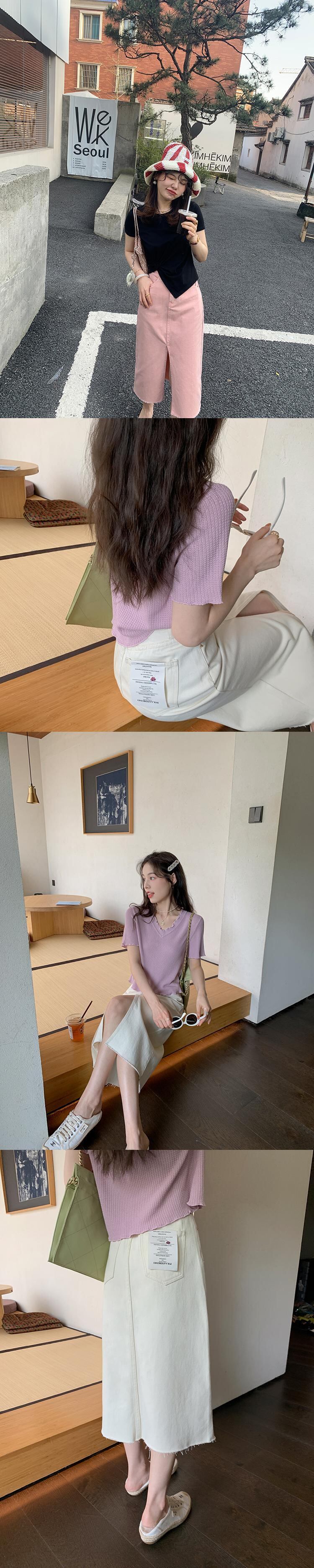 ミスシマリス[リトルマッシュルームデニム2.0]染色パウダースプリットスカート/ジーンズウィメンズサマーウエスト missi57838427686