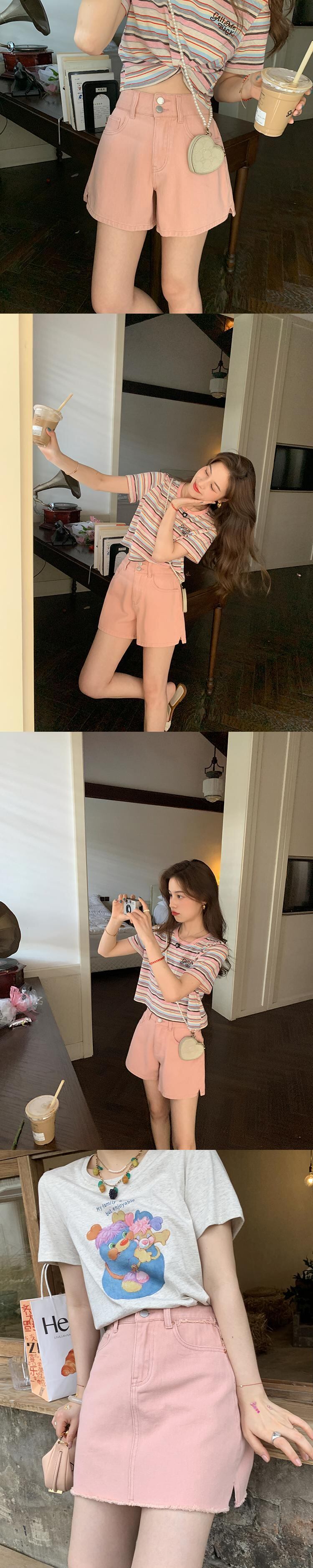 ミスシマリス[アタックレッグ]デニムショートパンツ/スカートウィメンズサマーシンウエストシンパンツ missi184130991
