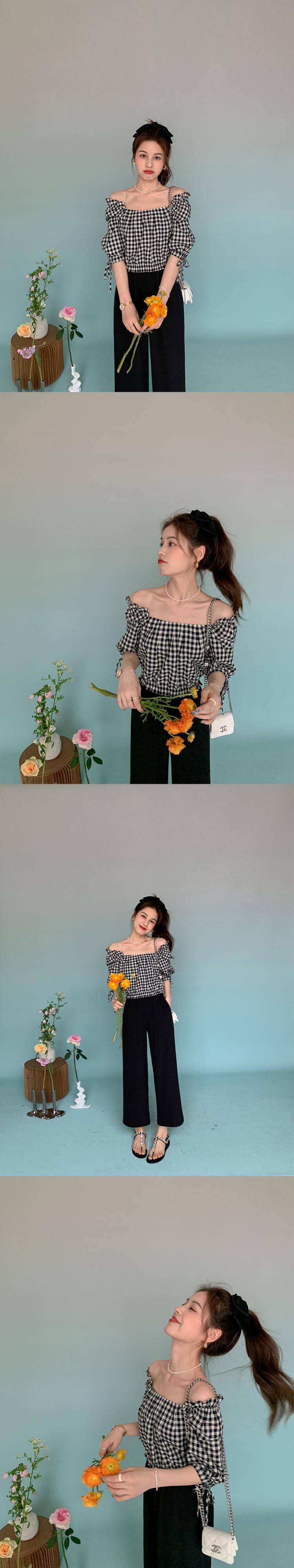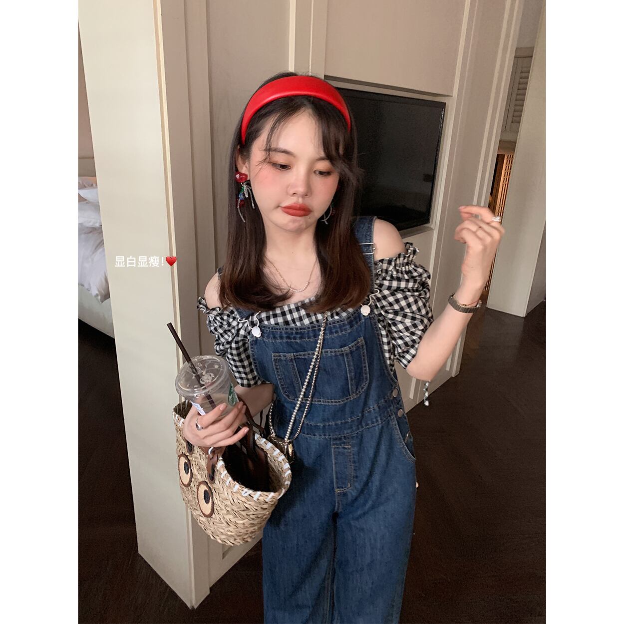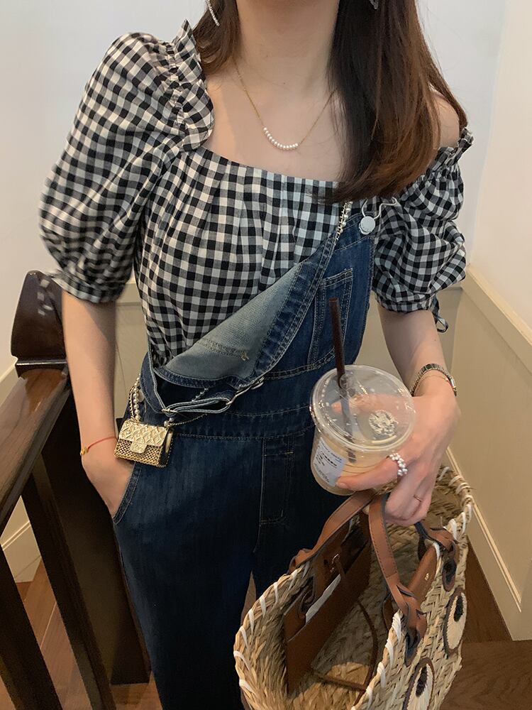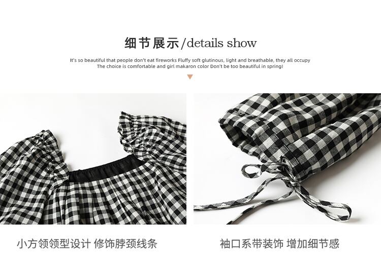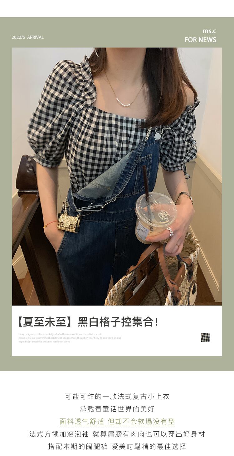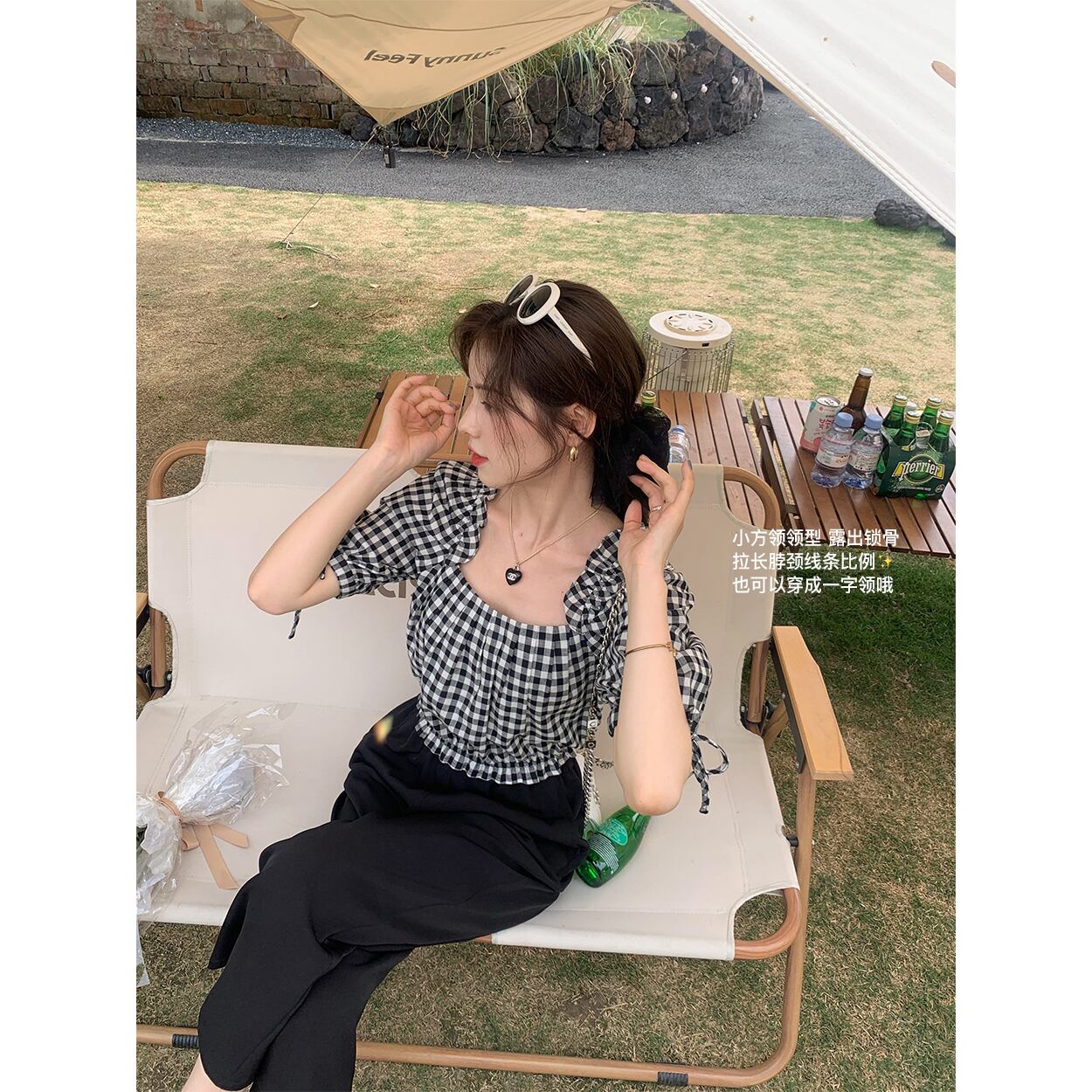 ミスチップマンク[夏至はまだ到着していません]甘い2襟トップの女性の夏の薄いパフスリーブ格子縞のシャツ missi83915504647