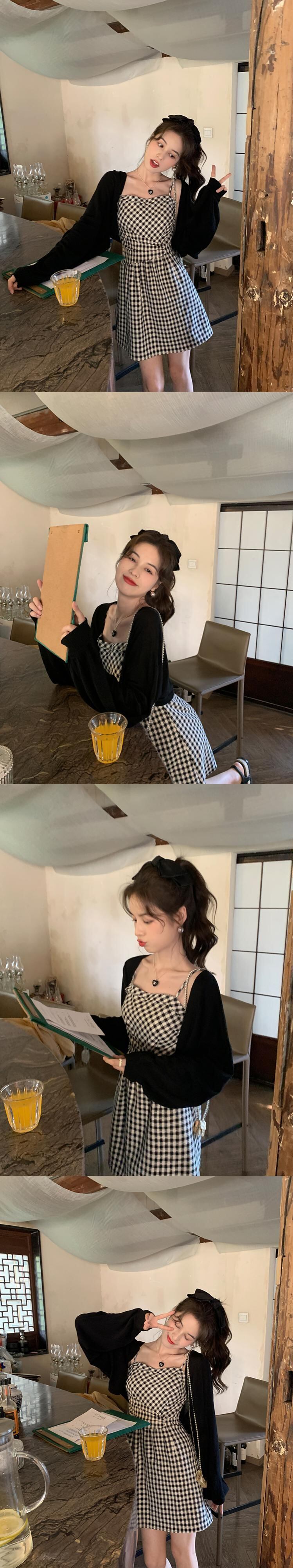 ミスシマリス【スウィートパイ2点セット】甘くてスパイシーなニットカーディガン/スリングドレスサマースカート missi38655911359