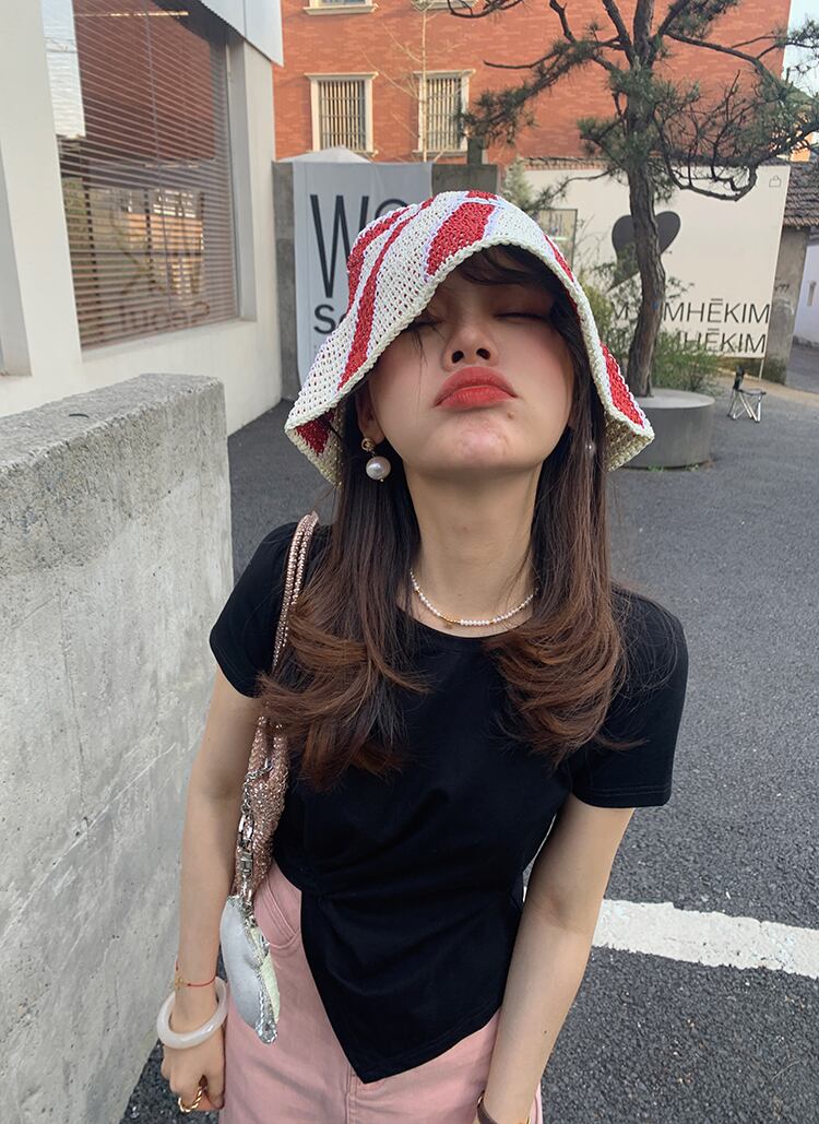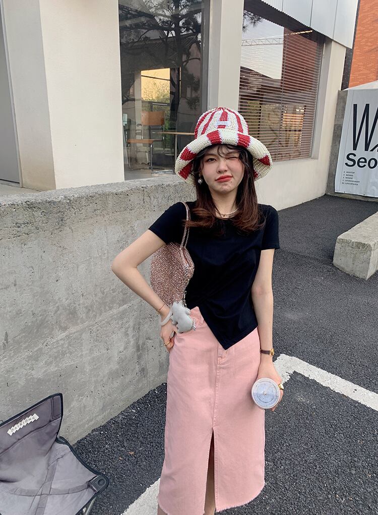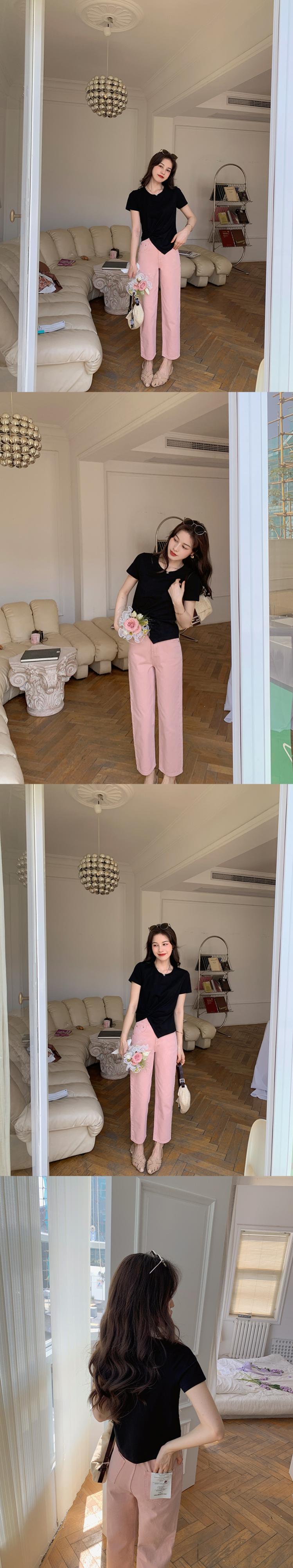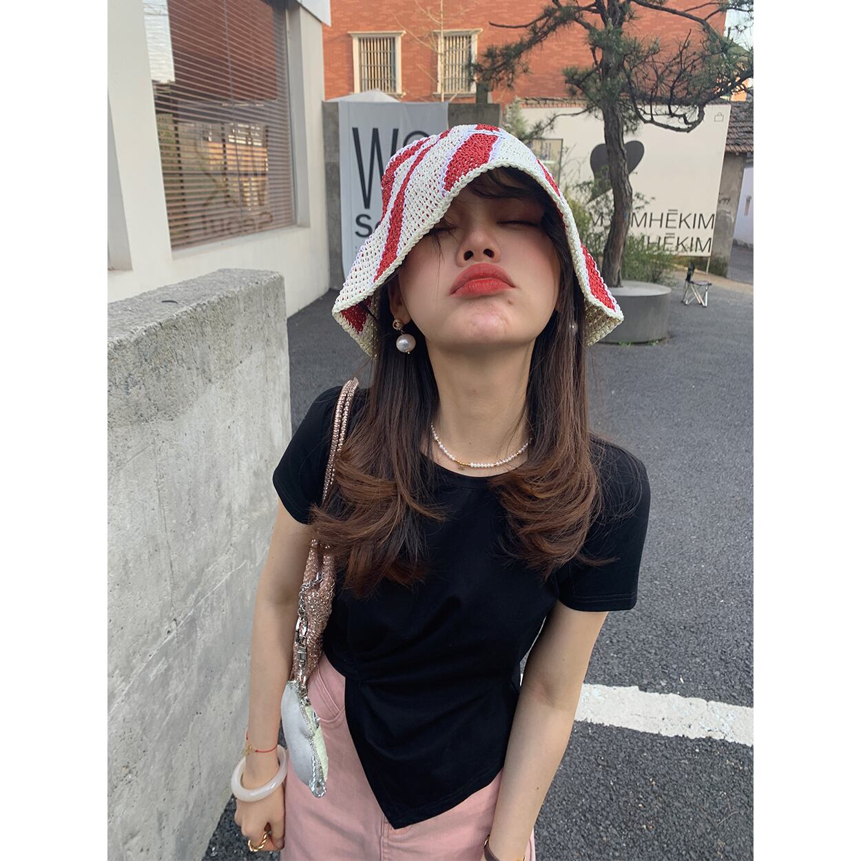ミスシマリス【タイドガールT】キンク半袖Tシャツレディースサマーイレギュラーショートラウンドネックトップ missi10696186723