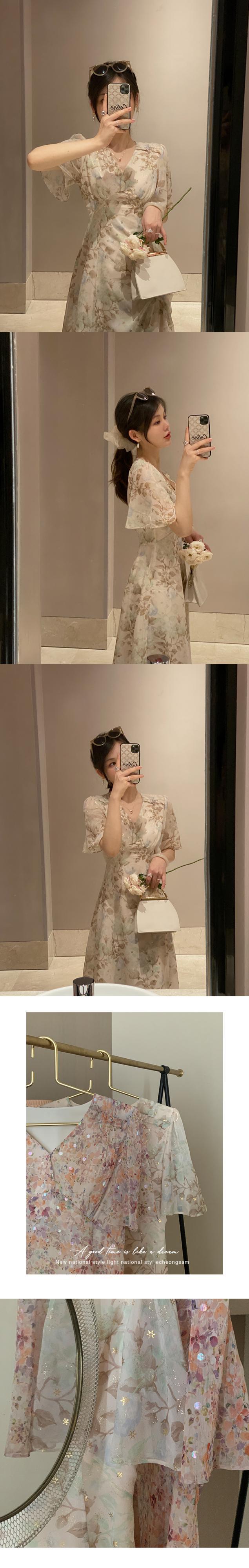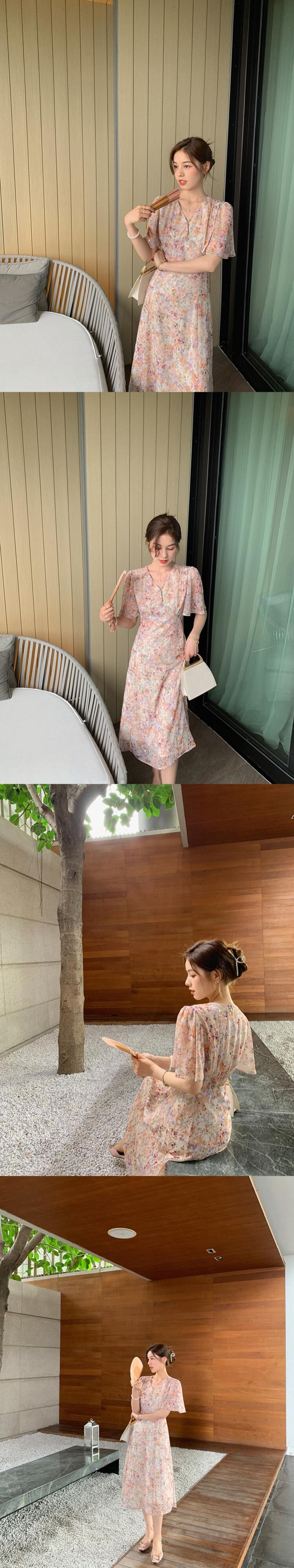 ミスシマリス福祉クリアランス[夢のような夢]Vネックフローラルドレス missi71326787311